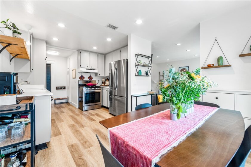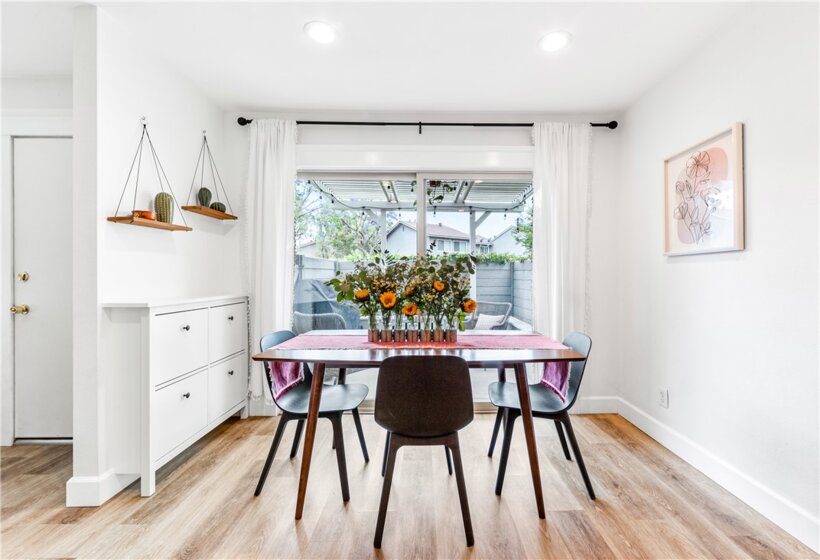 Located in the Winwood Community in Anaheim, this home is beautifully upgraded with warm woodlike laminate flooring, recessed lighting, 5 inch base boards and upgraded door trim with a craftman design. The home offers 3 bedrooms and a full bath on the 2nd floor. All bedrooms have matching ceiling fans and same flooring as the first floor and stairs. Using the same flooring throughout the home provides a cohesive style along with the accent walls in each bedroom. First floor half bath is styled with white wainscotting and dark blue paint for an elegant touch. All kitchen applicances are included along with washer/dryer and 2nd fridge in garage. The dining room area opens to the outdoor covered patio perfect for BBQ and entertaining along with the large green space in front the of unit. The 2 car garage is accessible from the kitchen. Garage includes some shelving and epoxy floors. The location is easily accessible to both the 91 and 57 freeways. It is located in the Yorba Linda-Placentia School District plus its near Yorba Linda Country Club, Yorba Linda Lakebed Park, Roland E Bigonger Park and many more locations for outdoor activities.