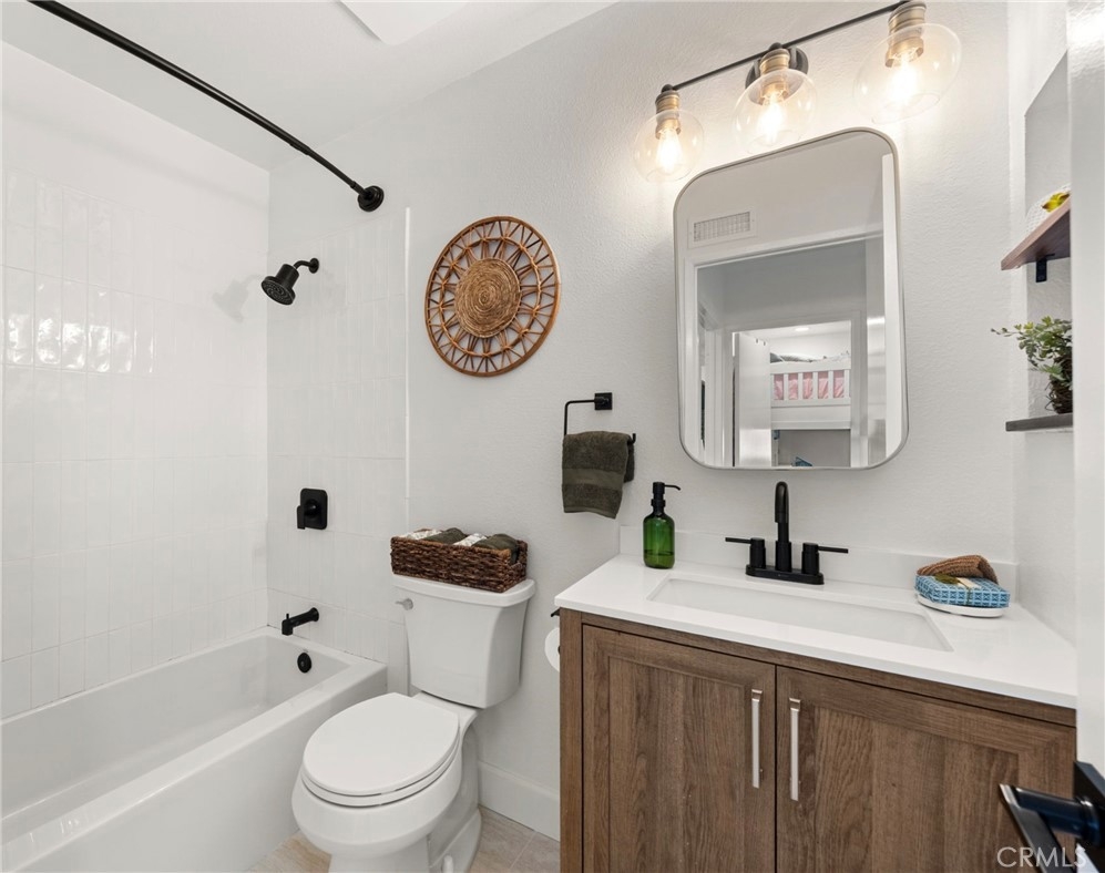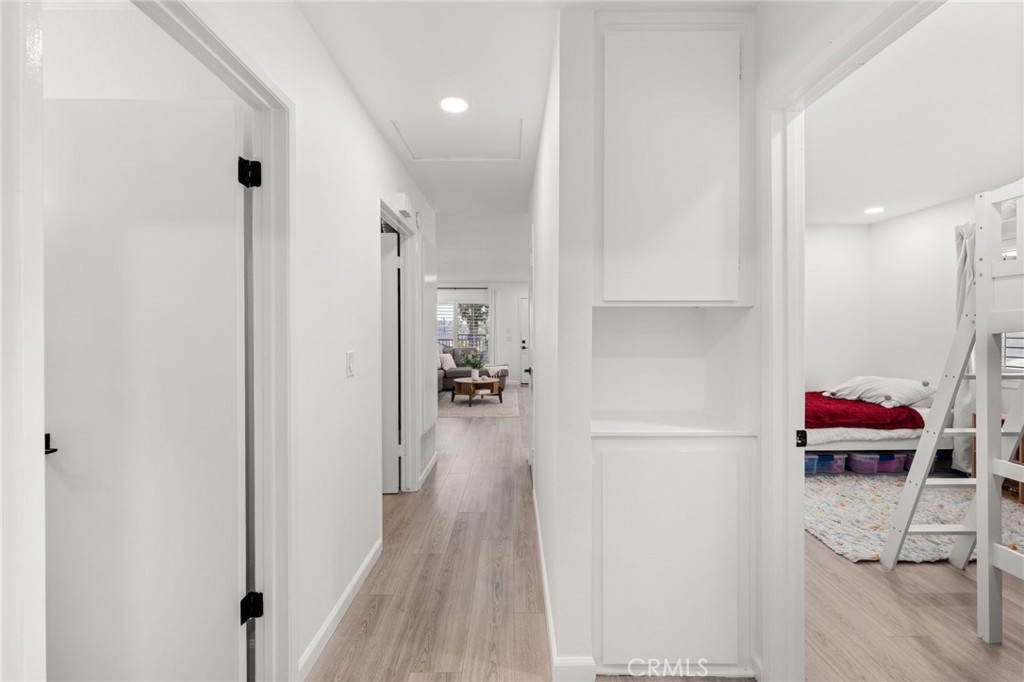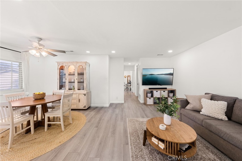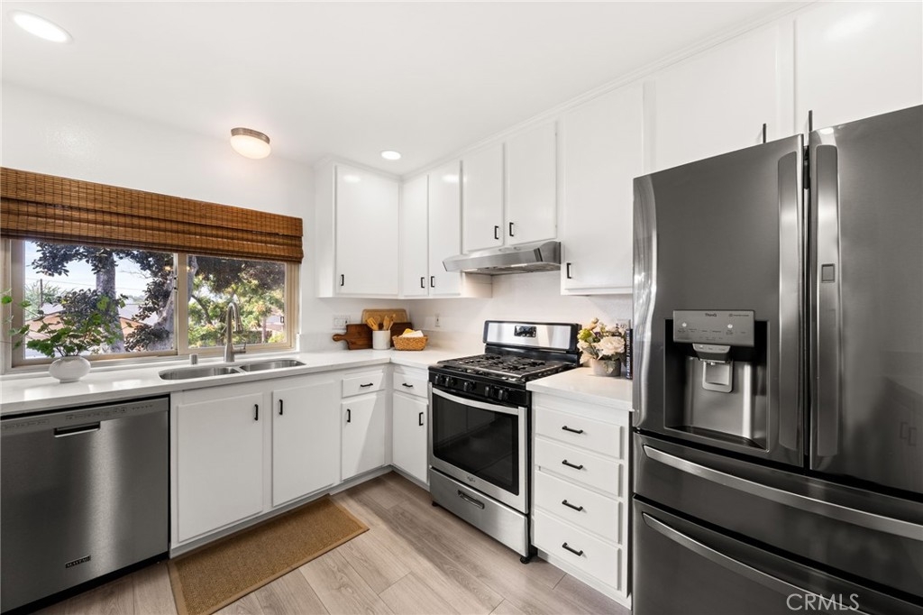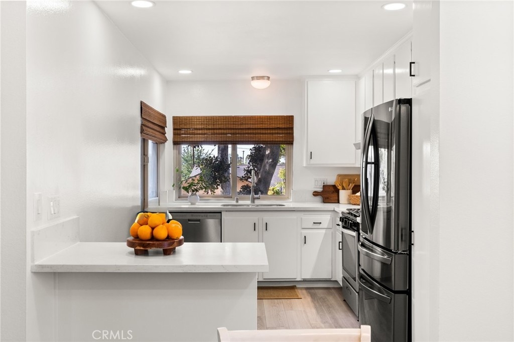 This beautifully remodeled home offers a serene, peaceful living environment with skyline and treetop views. New wood tone flooring meanders throughout all the living spaces and is accented with crisp new baseboard throughout. New paint to entire interior with brand new hardware to all doors and cabinets plus smooth ceilings with new recessed lighting, plantation shutters to all rooms with brand new custom bamboo roman shades in the kitchen, and dual pane vinyl windows through out the entire home add sophistication and elegance to this clean and airy home . The large kitchen has freshly painted cabinetry with brand new hardware, sleek quartz countertops, lovely stainless steel appliances and a delightful corner window which looks out over the neighborhood. The spacious bathroom has been completely remodeled with new European oak cabinetry, an extra deep bathtub with shower above, gorgeous vertically installed tile, new lighting, and darling recessed shelving. Seller recently replaced all the attic insulation as well as ducts and vents.. all work was permitted. All of this plus private indoor laundry room make this property a dream come true! The HOA recently replaced the garage door and opener to the private 1 car garage. The property boasts ample street parking, a private garage and one assigned parking space. Community amenities include and abundance of open space with lovely landscape and sprawling lawns, plus an oversized community pool!. Schools are in the sought after Placentia Yorba Linda School District. Super close to the 55 and 91 fwys as well as shopping and dining in Anaheim Hills...Be ready to fall in love!