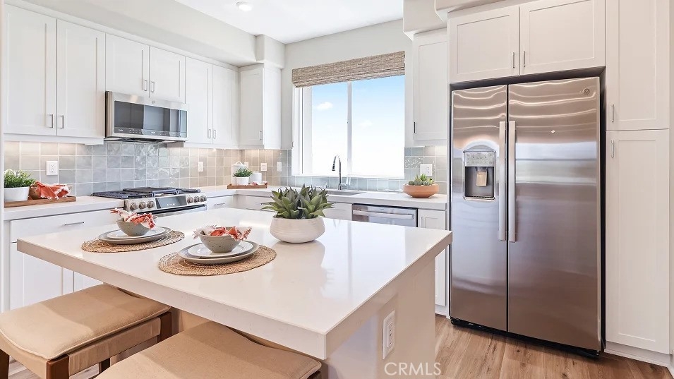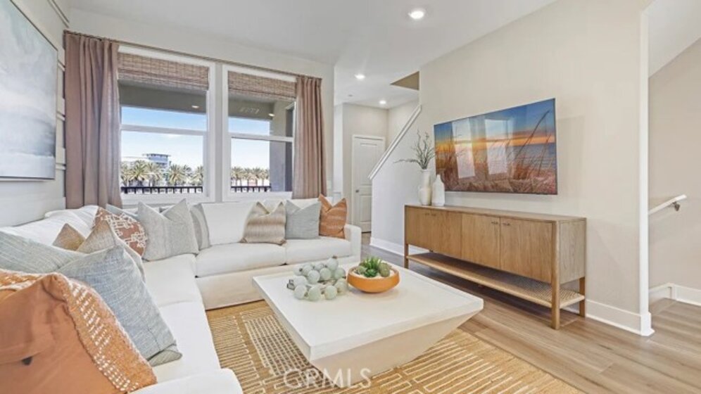 Residence 1 plan with private front courtyard leads you to the entry of this beautiful 3 bedroom, 2.5 bath, 3-level town home! A flex space on the first floor can be used as an office. Kitchen open to Dining and living room areas, includes an island perfect for entertaining, along with a walk-in pantry, quartz countertops, white cabinets and GE Profile stainless steel appliances, including the refrigerator! The Great Room is a perfect area to relax with a door that leads to a covered deck for you to enjoy the outdoors! The Owners Suite is spacious with a walk-in closet on the 3rd level, along with the other secondary bedrooms. Comes with Lennar’s everything included features such as soft close drawer’s LED lighting, 5 1/2" baseboards, Ring doorbell, Schlage Smart WIFI deadbolt, tankless water heater & dual glazed windows with high performance low-E glass are also included! Located in A-town where nearby is Angel Stadium, Honda Center, Disneyland and many restaurants! The upcoming OC Vibe is currently under construction, which is Anaheim's 95-acre, project including hotels, restaurants and open space! Don't miss out on this wonderful location