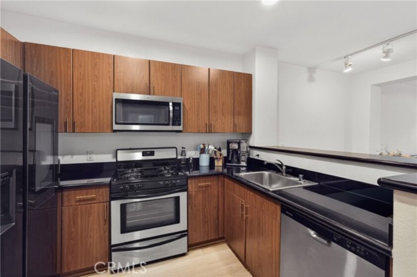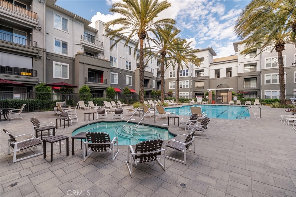 Welcome to Stadium Lofts in Anaheim’s highly sought-after Platinum Triangle-where modern living meets unbeatable convenience. This beautifully maintained, turn-key, 1-bedroom, 1-bath condo features an open-concept layout with wood-like flooring, granite countertops, and a modern kitchen complete with stainless steel appliances, sleek cabinetry, and bar seating. The spacious, open living area is perfect for entertaining and has access to a private patio. A generously sized bedroom includes an over-sized closet, offering both comfort and functionality. Additional highlights include an in-unit laundry closet (washer and dryer included), a tankless water heater, and one dedicated parking space. Modern, sleek and move-in ready. HOA dues include water, trash, and high-speed internet for added value and convenience. Stadium Lofts offers resort-style amenities including a junior Olympic-sized pool, spa, sauna, fully equipped fitness center with Peloton room, clubhouse, BBQ areas, and ample guest parking. Ideally located near Angel Stadium, Honda Center, Disneyland Resort, ARTIC Transportation Center, and the upcoming OC Vibe, with easy access to the 5 and 57 freeways. Amazon Hub lockers and secure mailboxes also on site.
