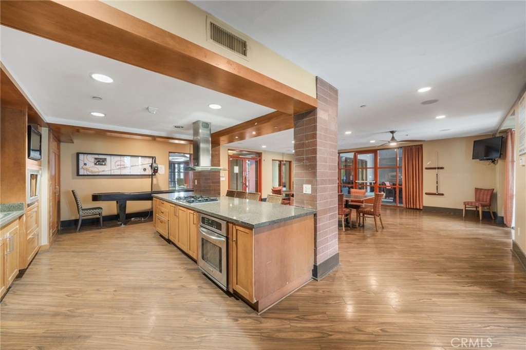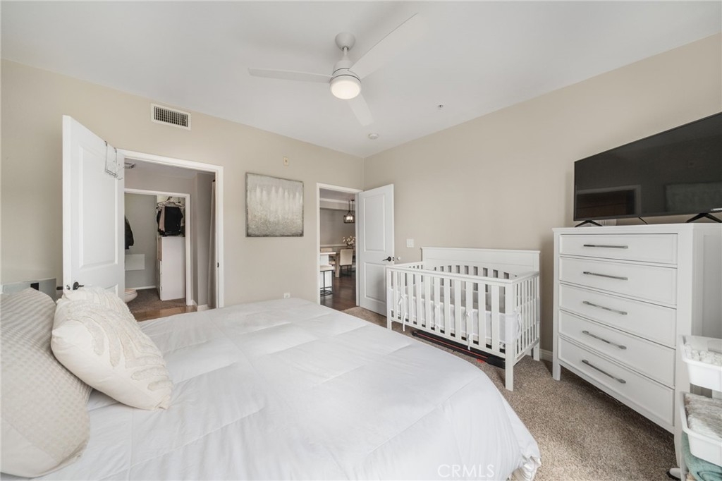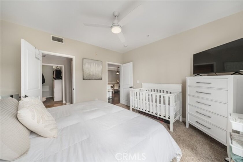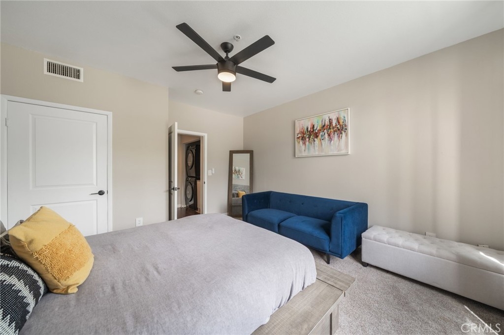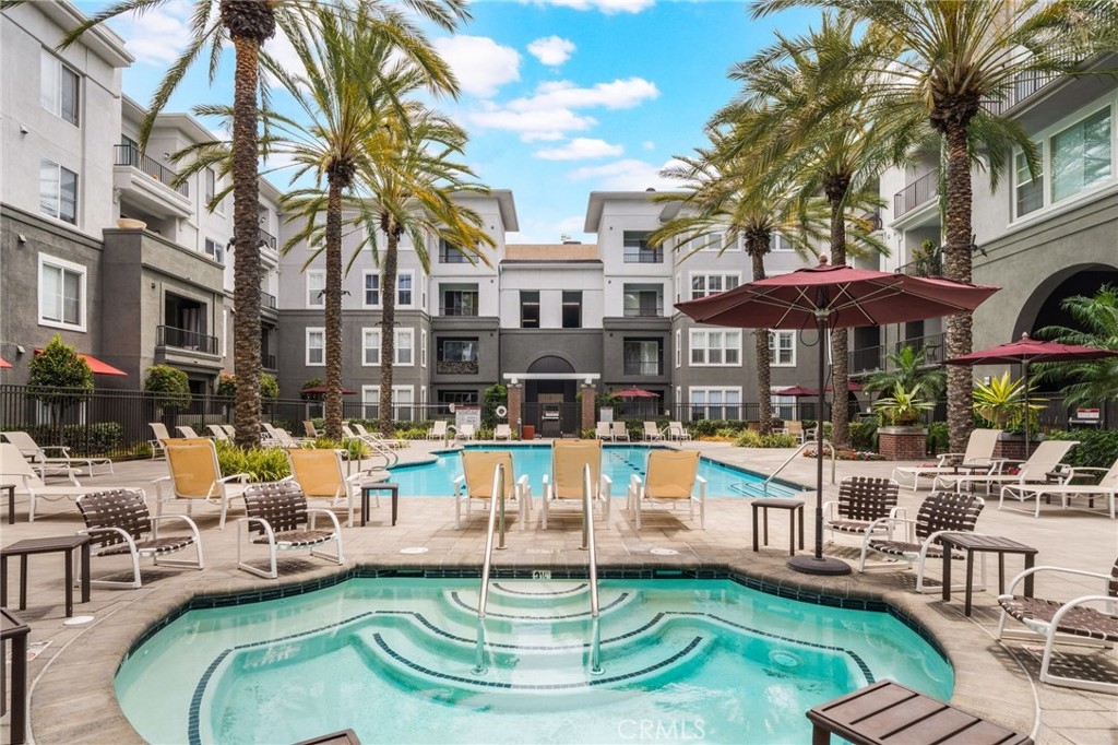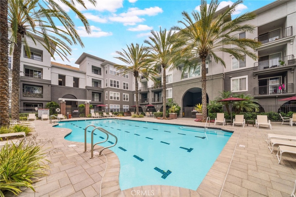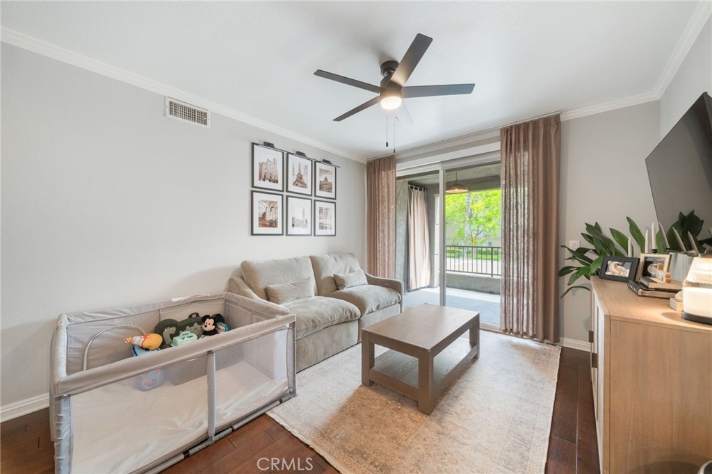 Welcome to Stadium Lofts, where modern living meets everyday convenience in the heart of Anaheim’s Platinum Triangle. This 2-bedroom, 2-bath residence offers an open, airy layout with hardwood floors, crown molding, and a functional design that flows naturally for everyday living. The kitchen has been recently remodeled with sleek white cabinetry, matching appliances, and a refreshed, contemporary feel that ties the space together. Down the hall, a dedicated laundry area accommodates a side-by-side washer and dryer, offering the convenience of in-unit laundry. Life at Stadium Lofts extends beyond your front door. Enjoy resort-style amenities including a fitness center, pool and spa, dry sauna, conference room, game room, landscaped courtyards, BBQ areas, and EV charging stations, all complemented by low HOA fees. Positioned just minutes from Angel Stadium, Honda Center, Disneyland, Anaheim GardenWalk, The Outlets at Orange, and the ARTIC/Amtrak station, you’re surrounded by some of Orange County’s top dining, entertainment, and shopping. Easy access to the 5, 57, 22, and 55 freeways makes commuting simple. VA and FHA approved, offering flexibility for both primary residence buyers and long-term investment potential. Close proximity to Chapman University, West Coast University, and UCI Medical Center adds to the overall convenience and rental appeal.