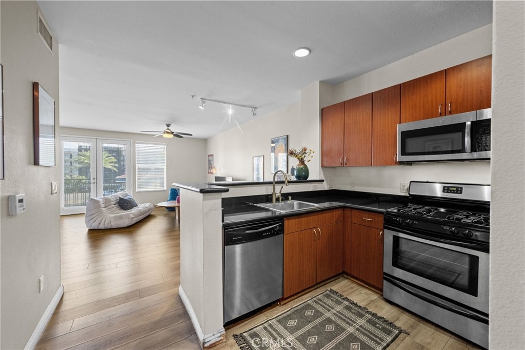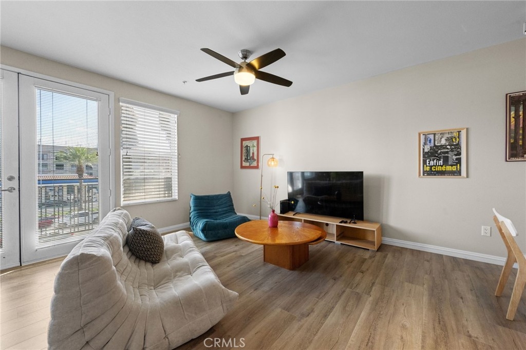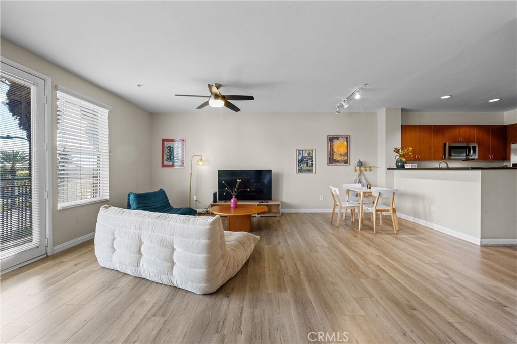 Live the Urban Lifestyle Near Anaheim Stadium – Own, Don’t Rent! Why settle for renting when you could own this spacious 3rd-floor loft with a city view? Step outside and enjoy the vibrant atmosphere, with Palm trees and a private balcony perfect for relaxing after a long day. Inside, you'll find an open layout featuring space for living, dining, bedroom, and office areas — ideal for both work and play. The kitchen is fully equipped and come with a fridge! There's side-by-side laundry (washer & dryer included), plus a full bath for added convenience. You'll have plenty of storage, with a coat closet and a walk-in closet to keep everything organized. Plus, your designated 3rd-floor parking spot is just a few steps away. HOA includes water, trash and Internet. The unit also boasts stylish LVP wood grain flooring, neutral paint, and recessed lighting throughout. Need some fresh air? The building’s amenities include a large pool and spa area, BBQ courtyards, a well-equipped gym with sauna and outdoor shower, and even lockers for deliveries. You can also rent the community kitchen for your next get-together. For foodies, there are plenty of options just steps away, or you can take a short walk to the Grove or Angel Stadium. Plus, biking to Chapman University is a breeze, and you're in the heart of the Platinum Triangle with easy access to UCI Medical, the Outlets at Orange, Disney and Old Town Orange. With guest parking available and multiple nearby attractions, this is the most affordable home in the area — especially with all the new development around. Don’t miss your chance to own in this prime location! HOA includes water, trash and Internet.