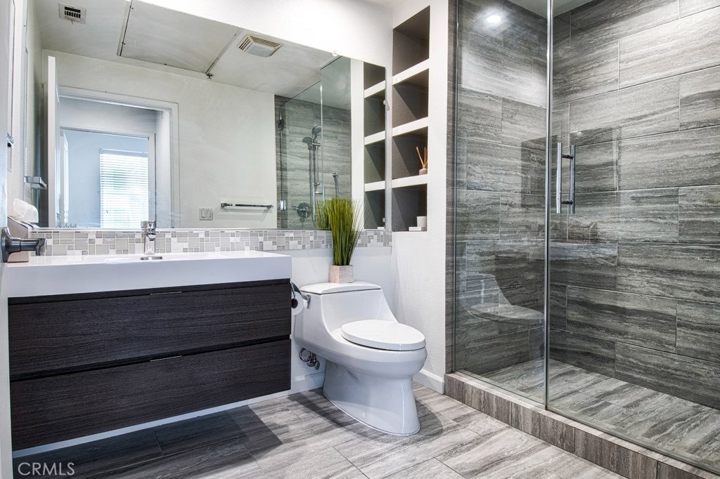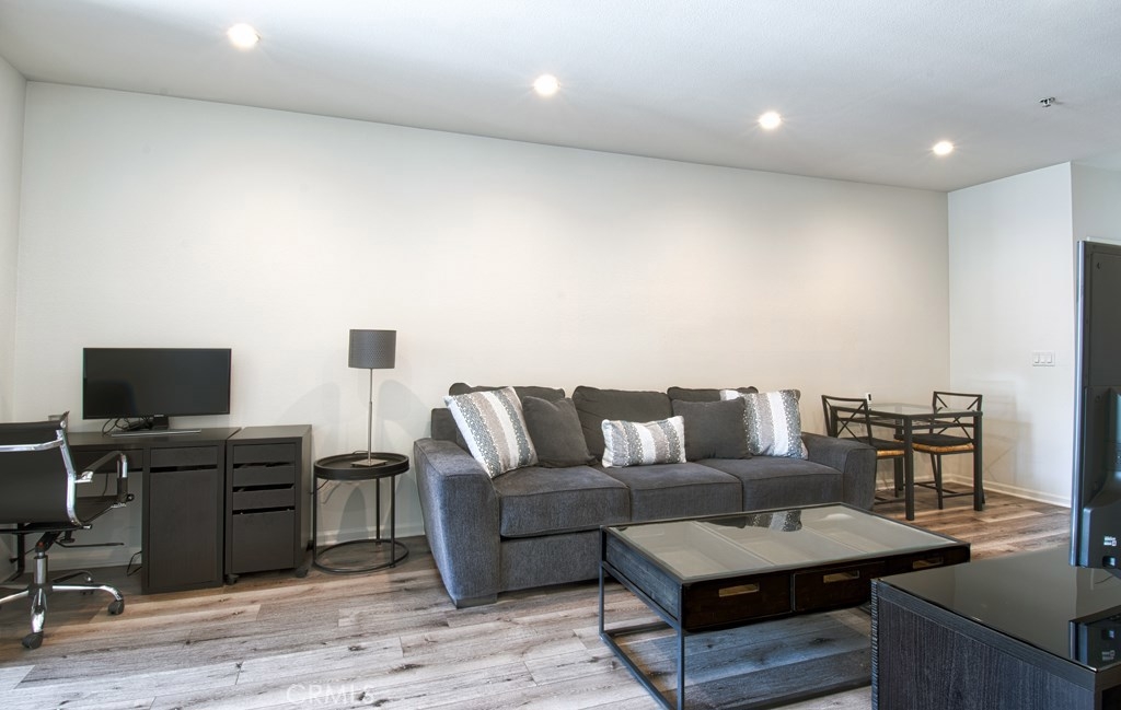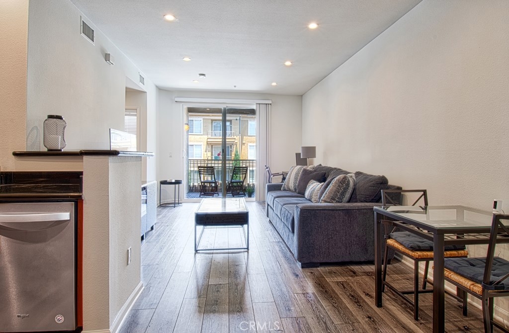 This upgraded third floor Stadium Loft condominium is move-in ready, with an excellent location. Spaciously modern, one bedroom unit includes a beautifully remodeled bathroom, upgraded wood and decorative tile flooring, a rear patio balcony overlooking the courtyard and resort pool area. Unlike most units which only have a single parking space, this unit includes TWO PARKING SPACES (rarely offered) in the gated, and secure structure. Other features include, end unit location, third floor elevator access, inside washer, dryer, refrigerator, gas range, microwave. Resort style amenities with pool, spa, clubhouse with full kitchen, well equipped gym, sauna, game/entertainment room and more. HOA fees include free internet, trash and water. Centrally located close to Angel Stadium, restaurants, The Grove, Disneyland and Honda Center. Perfect as a primary or weekend home. Your kids going to university? This may be cost less than renting, or boarding at Chapman or UCI. Excellent opportunity.