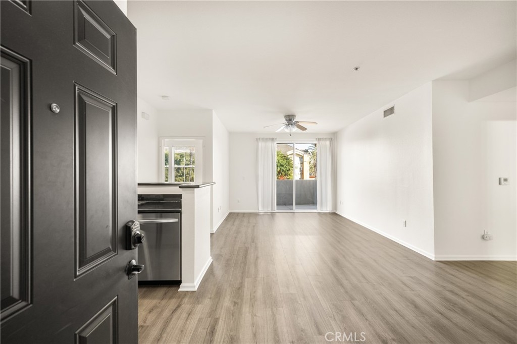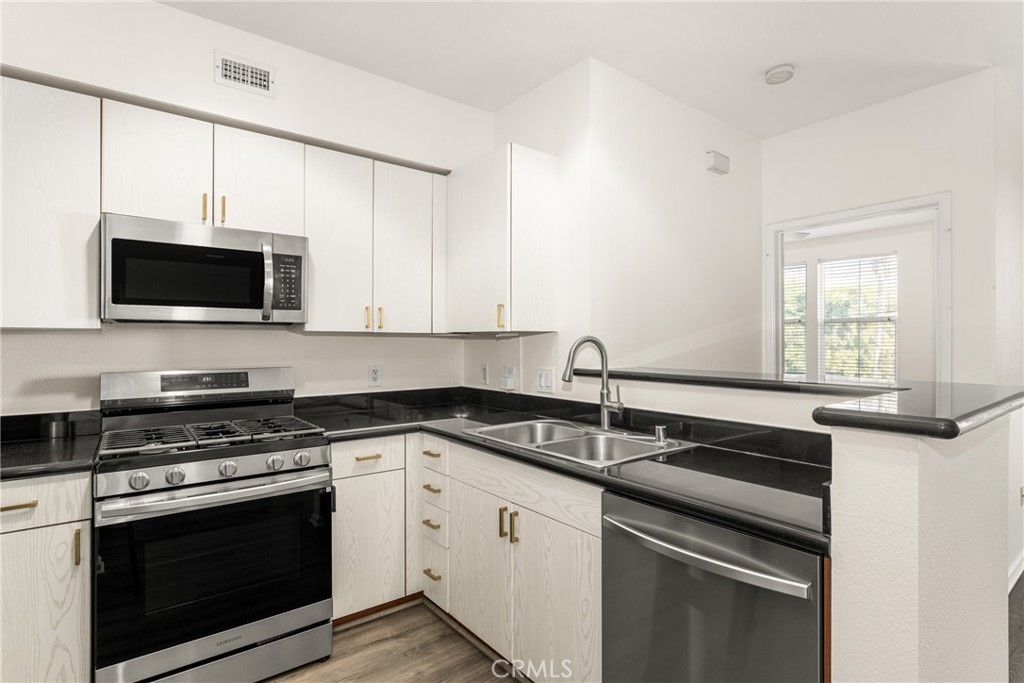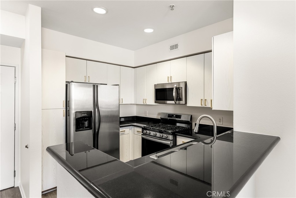 Welcome to the Anaheim Stadium Lofts, the pinnacle of luxury living in the center of the action in Anaheim. This spacious 2 bed, 2 bath home boasts floor-to-ceiling upgrades, a panoramic balcony view and an open floorplan, all nestled in a treasure trove of lush landscaping and exclusive community amenities. Featuring contemporary architecture inspired by Frank Lloyd Wright, the vibrant community is centrally located near prime shopping and dining, Disneyland, Angel Stadium, and more. Enjoy casual meals at the countertop, with a view of your upgraded kitchen. A dramatic, black granite countertop highlights sleek, modern cabinetry, all appointed with a new suite of stainless-steel appliances. Dual pane windows keep each room bright with natural light and a private balcony provides the perfect spot to bask in the weather amid a full panoramic view. Featuring in-unit, side-by-side laundry, two spacious walk-in closets, and a sprawling, private, detached storage room (on the same level as the home). Live surrounded by luxury with an endless list of private community amenities. Residents enjoy a full-sized pool and spa, clubhouse, sauna, firepits, and more. Train in a state-of-the art private gym or entertain guests in an exclusive clubhouse and game room—complete with a fully equipped open kitchen. With water and internet included with the HOA, the benefits are endless, and the lifestyle is limitless. With a newer gas range, dishwasher, washer, and dryer included, you have everything you need for a turn-key experience. All this and more, centrally located near the 5/57/22/55 freeways and nearby city attractions. Welcome to 1801 East Katella—enjoy all the best Anaheim has to offer.