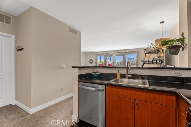 Experience elevated resort style living at the highly coveted Stadium Lofts! This beautifully upgraded, move-in ready studio condo offers 784 square feet on the 3rd floor with the rare bonus of TWO reserved parking spaces in a secured garage. Located in Anaheim’s prestigious Platinum Triangle, the open concept layout invites customization to suit your lifestyle. Large windows and floor-to-ceiling French doors bathe the home in natural light, complemented by custom window treatments and a private balcony perfect for fresh air and gentle breeze. Step inside to brand-NEW plush carpet (installed Aug 2025)and a modern kitchen boasting stainless steel appliances, including a newer dishwasher (2024), elegant granite countertops, and ample cabinetry. The stylish bathroom was refreshed in 2022 with updated vanity, mirror, lighting, exhaust fan, and medicine cabinet, complemented by a full bathtub with shower. Enjoy the convenience of a dedicated laundry closet with side-by-side washer and dryer, plus a spacious walk-in closet for optimal organization. Central AC & a Nest thermostat (installed 2020) ensures comfort year-round. Stadium Lofts offers resort-style amenities: pool, spa, sauna, fitness center, clubhouse with kitchen, game room, business center, outdoor fireplace lounge, secure bike parking, ample guest parking, and 24-hour gated security. Building Elevators and HOA covers trash, sewer, and high-speed WiFi for ease & convenience. Perfectly situated near Angel Stadium, Honda Center, City National Grove, Disneyland, UCI Medical Center, The Outlets at Orange, and Anaheim Metrolink Station—with easy access to the 57, 5, 91, and 22 freeways. Discover the best of Orange County living — schedule your showing today!