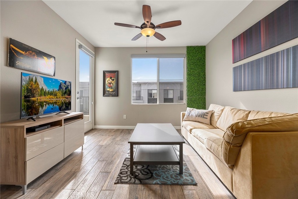 Welcome to this exquisite top-floor condo in Anaheim’s sought-after Stadium Lofts! This stunning 1-bedroom, 1-bathroom residence blends style and convenience, offering a spacious, sunlit living area that flows effortlessly onto a private patio—ideal for unwinding under the California sky. Inside, enjoy a modern layout and high-end finishes that elevate everyday living. With a secured, deeded parking spot, you’ll have peace of mind and easy access to your home. The HOA goes above and beyond, covering WiFi and providing a wealth of resort-style amenities, including a state-of-the-art fitness center, soothing sauna, sparkling pool, hot tub, and a chic clubhouse perfect for gatherings. This prime location puts you at the heart of Anaheim’s vibrant lifestyle—steps from Angel Stadium, a quick drive to Disneyland, Downtown Disney, and the Honda Center, and within minutes of world-class dining, shopping, and entertainment options. As an added treat, watch Disneyland’s breathtaking fireworks from the parking structure rooftop! Embrace a lifestyle where every day feels like a vacation, surrounded by the best of Orange County. Don’t miss this rare opportunity to make this incredible home your own!