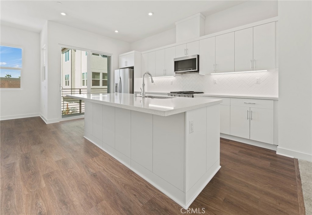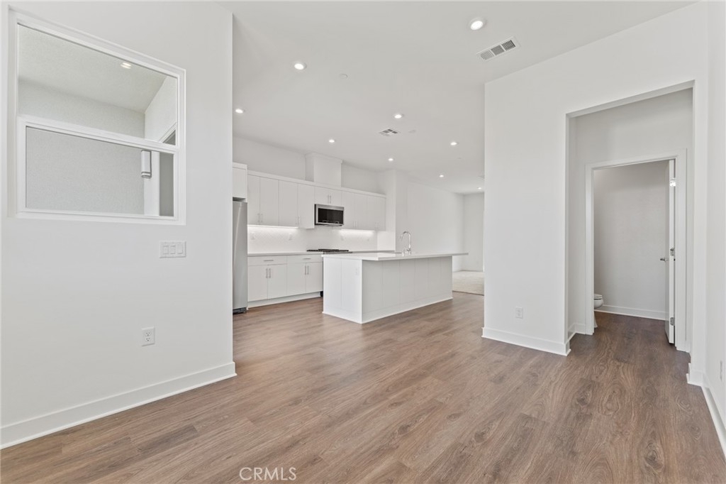 Located within the desirable, gated 100 West community built by renowned builder Toll Brothers is a four story home that boasts modern designs. First level consists of a downstairs bedroom and bathroom. Main level holds the open concept living area. Kitchen is complete with gorgeous white cabinetry and center island. Two patios on the main level allow for an enhanced indoor/outdoor flow. Third level features the luxurious master suite as well as remaining bedrooms. Windows throughout allow for sunlight to pour in, bringing in a plethora of natural lighting. Residing on the upmost level is a roof top deck that is perfect for entertaining guests. Additional highlights include two car garage, gated community, and many more. Centrally located within the heart of Orange County, this home is minutes away from Disneyland, Angels Stadium, Honda Center, shopping, and dining. This home allows for the lively Anaheim lifestyle, all while offering both comfort and convenience.