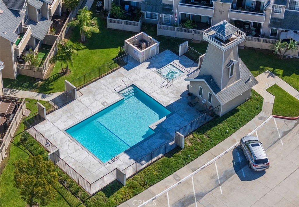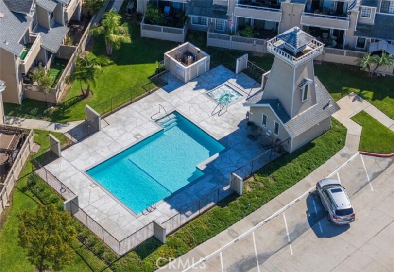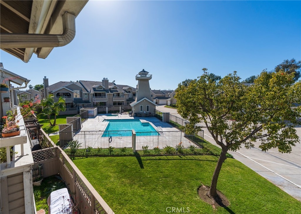 Nestled within the private, gated community of Wellington Landing, this exquisite 1875 West Falmouth unit (#48) offers a rare blend of privacy and sophisticated design. As a premier upstairs residence, the home boasts breathtaking, unobstructed views from both the front windows and back windows and balcony, creating an atmosphere of serenity and openness. The entry opens to a bright, airy floor plan defined by soaring high ceilings and an abundance of natural light streaming through several strategically placed skylights. The heart of the home is a spacious kitchen featuring plentiful cabinetry, a pantry, and a charming breakfast nook, all flowing seamlessly into the main living area via a convenient eat-in bar and formal dining space. The living room serves as a perfect retreat, anchored by a beautifully remodeled fireplace and sliding doors that lead to a large, private balcony. For added convenience, the balcony includes a dedicated private laundry room. Both bedrooms are generously sized with ample closet space, complemented by a clean hallway bathroom with a tub/shower combo and a primary suite featuring a modern, remodeled walk-in shower. Built in 1984 and spanning 939 square feet, this two-bedroom, two-bathroom home also includes a two-car detached garage. Residents of this lushly landscaped community enjoy exclusive access to a sparkling pool and the security of a gated entrance.