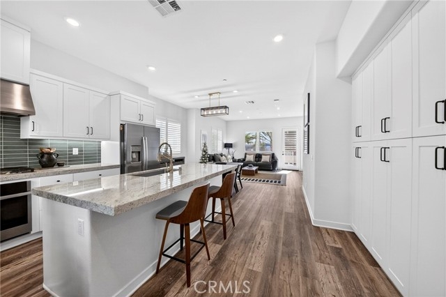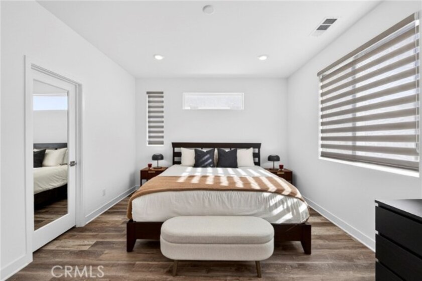Welcome to 1884 S Westside Dr, Unit #54, a stunning example of modern luxury living located in the vibrant Platinum Triangle neighborhood of Anaheim, CA. This property features generous 2,193 square feet of living space, featuring 4 bedrooms and 3.5 bathrooms. This immaculate, nearly new townhome combines a spacious, contemporary design with significant high-end upgrades, offering unparalleled comfort and style. Enjoy sophisticated style with premium plantation shutters, installed throughout the home, offering both light control and privacy. This home features major functional upgrades including a whole-house water softener system and an energy-efficient tankless water heater and split-unit HVAC and appliances, ensuring comfort and lower utility bills. A private bedroom suite on the first level is ideal for guests, an in-law suite, or a dedicated home office. The second level has a kitchen designed for a chef, shines with beautiful custom backsplash tiles, perfectly complementing the modern granite countertops and crisp white cabinetry. A large island with bar seating, and premium stainless steel appliances. This home features an open-concept living area, perfect for entertaining, with a covered balcony for outdoor relaxation. The third level hosts a luxurious primary suite complete with a spa-like bathroom, dual vanities, and a walk-in closet, accompanied by two spacious additional bedrooms. A dedicated laundry room on the same floor as the bedrooms adds to the home's functionality. Direct access to an attached two-car garage provides convenience and additional storage space. Residents can enjoy community resort style amenities such as a sparkling pool, spa, and BBQ area. This condo is ideally situated near major Anaheim attractions and hubs, including Disneyland, Angel Stadium, the Honda Center, and the Anaheim Packing District. Located near five major freeways (91, I-5, 57, 22, 55), the property offers easy access to all of Southern California. This sophisticated, move-in-ready home presents a rare opportunity for upscale, modern living in a highly desirable location.