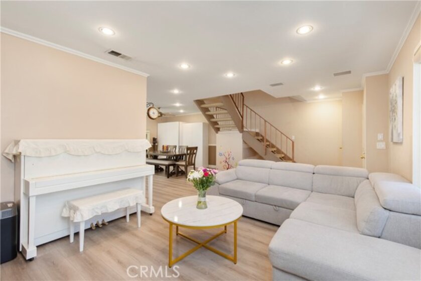 Welcome to 2157 W Essex Circle, a thoughtfully updated 4 bedroom, 2.5 bathroom home in the desirable Brookmore Arms community of Anaheim. This two story residence features an open floor plan designed for comfortable everyday living. The kitchen offers refreshed cabinetry, laminate countertops, a stylish tile backsplash, stainless steel appliances, and a large kitchen window that opens directly to the back patio, making entertaining easy. The dining area opens to a private patio, ideal for indoor outdoor living. Modern vinyl flooring runs throughout the main living areas. Additional highlights include a detached two car garage and access to community amenities including a pool and clubhouse. Ideally located just 2.5 miles from Disneyland with convenient access to the 5, 91, and 22 freeways, this home offers comfort, style, and an excellent location.
