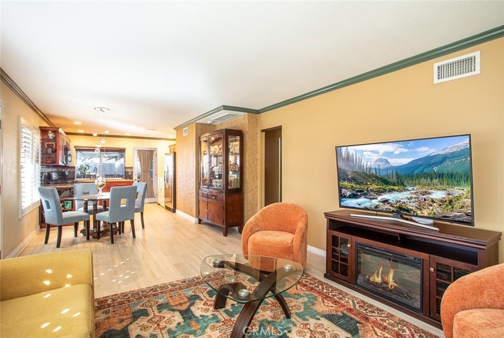 Welcome to this beautifully upgraded single-story home in the desirable Casa Canon community. Set in one of the most desirable positions within the community, balancing privacy with a sense of openness. The open-concept layout connects the living room and kitchen, highlighted by wood-look flooring, crown molding, dual-pane windows, window shutters and tasteful architectural wall cutouts with wood detailing. The home also features interior laundry, adding everyday convenience. The spacious primary bedroom includes two closet spaces and sliding door access to a large, covered, fully enclosed private patio. Designed for year-round enjoyment, the patio offers vinyl fencing, a storage closet, jacuzzi hookups, and ample space for entertaining. Residents enjoy a low HOA that includes water, lush greenbelts, a pool, and a clubhouse. Conveniently located near the 55 and 91 freeways, schools, parks, shopping, and dining. Zoned for Olive Elementary School, Cerro Villa Middle School, and Villa Park High School-one of the most sought-after school districts in the area. A level of care that’s evident throughout the home- this one is worth seeing.