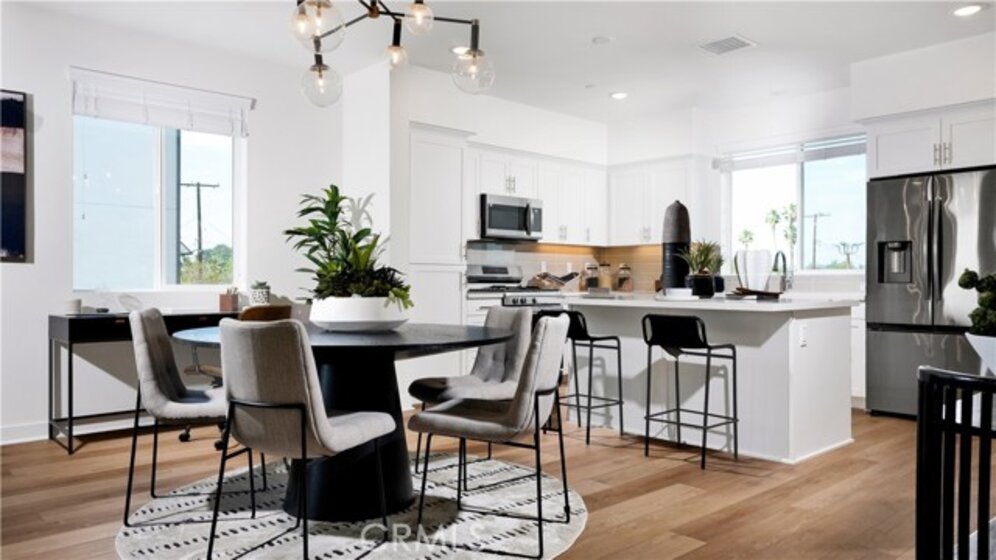 Welcome to this beautifully upgraded and fully furnished end-unit townhome offering approximately 1,976 square feet of thoughtfully designed living space. This spacious residence features 4 bedrooms and 4 bathrooms, including a convenient first-floor bedroom and bath ideal for guests, multigenerational living, or a private office. The open-concept main living level is designed for both comfort and entertaining, with a bright great room that flows seamlessly to a private balcony. Large windows throughout the end unit bring in abundant natural light, enhancing the airy feel of the home. The upgraded kitchen serves as the centerpiece of the home and features quartz countertops, white shaker cabinetry, an oversized island, stainless steel appliances including a refrigerator, and a dedicated dining area. Luxury vinyl plank flooring runs throughout the main living areas, offering both durability and a modern aesthetic. Additional features include spacious walk-in closets, an indoor laundry area, and thoughtfully selected finishes throughout. A rare opportunity—this home is being sold fully furnished with designer-selected furniture included, creating a true turnkey experience and exceptional value for the next owner. Move-in ready with upgrades already in place, this home offers style, space, and convenience from the moment you walk in.