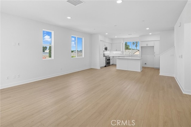 Discover elevated living at Townes at Orange, an exclusive enclave of just 24 brand-new townhomes offering modern design and a prime location near shopping, dining, and major freeways. This move-in ready Plan 4X home features 3 bedrooms + a den, 2 full baths, and 2 half baths across approximately 1,971 sq. ft. of beautifully designed space. Nestled toward the back of the community for added privacy, this upgraded end-unit home offers a bright, open-concept layout perfect for modern living. Enjoy a spacious great room that flows seamlessly into a private balcony, ideal for relaxing or entertaining. The chef-inspired kitchen shines with quartz countertops, a large island, stainless steel appliances, white shaker cabinetry, and designer finishes throughout. The thoughtful floorplan includes a first-floor bedroom with a full bath for guests or a home office, while the upstairs den adds versatility for your lifestyle needs. Additional highlights include walk-in closets, an indoor laundry room with side-by-side hookups, smart home features like a Ring doorbell and smart thermostat, and carefully curated upgrades that bring sophistication and comfort to every space. Move in today and experience the perfect blend of style, convenience, and community living at Townes at Orange.