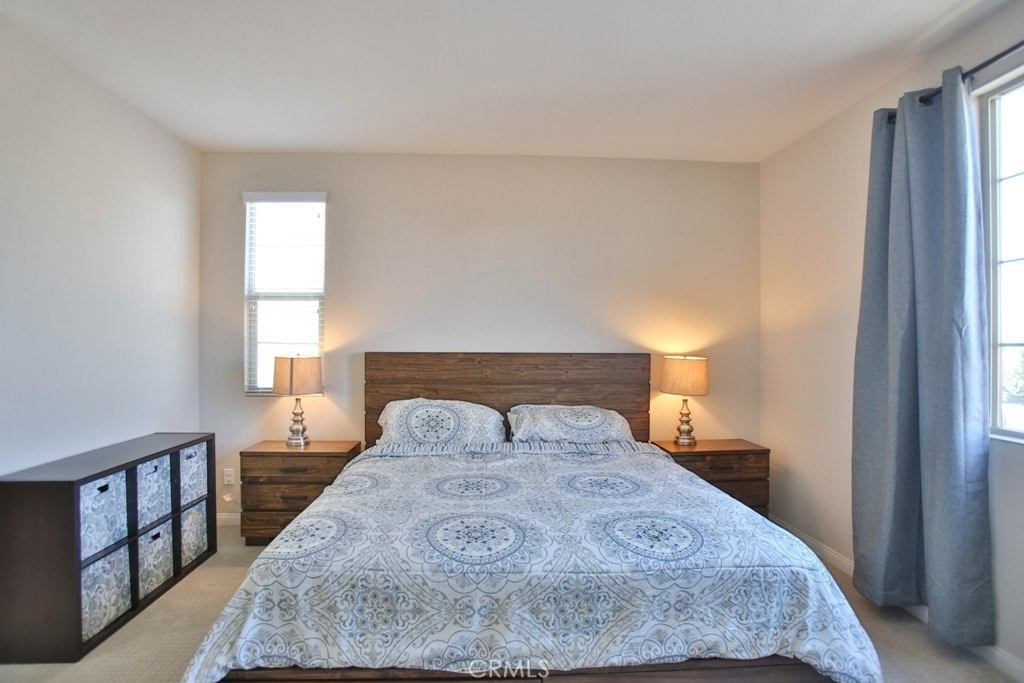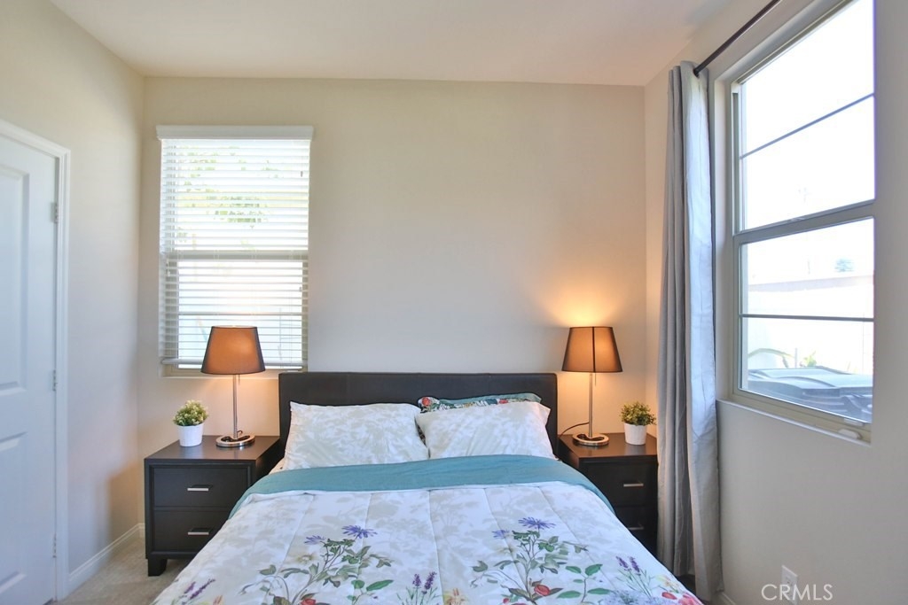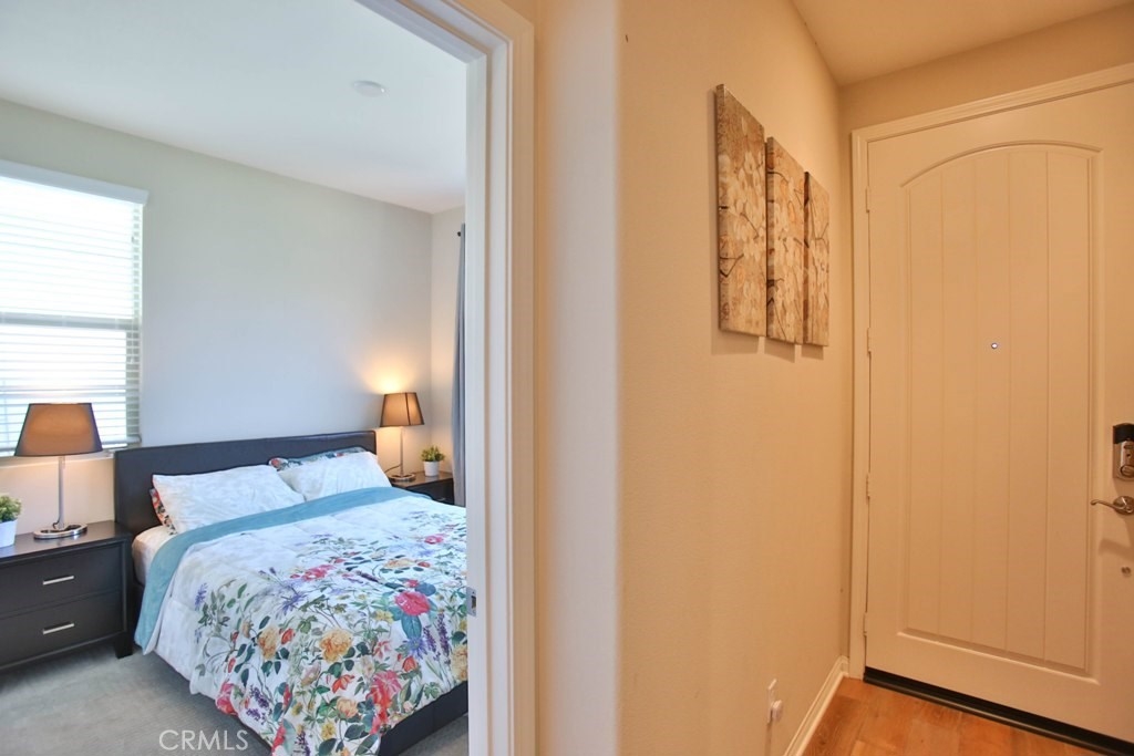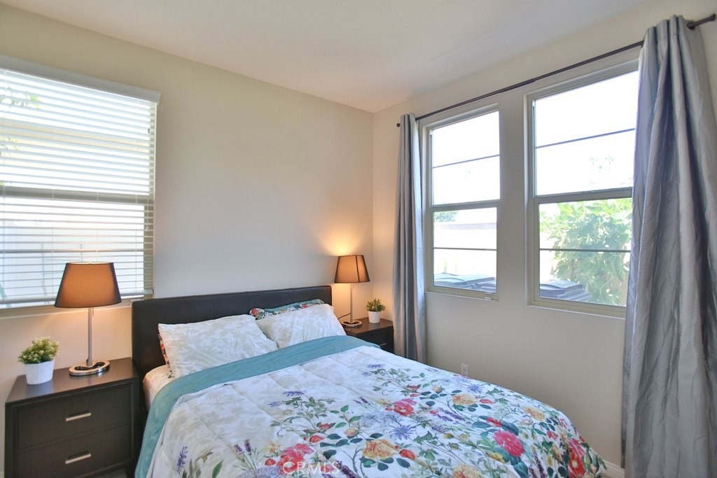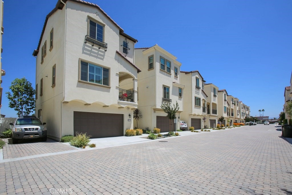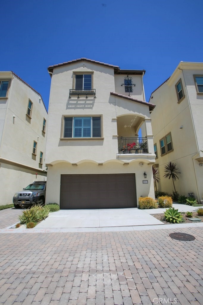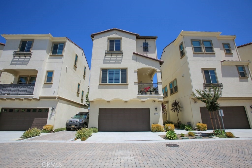 This beautiful, newly built detached home is fully equipped with many upgrades: large entertaining island with quartz countertops, stainless steel appliances, window shutters, hardwood floors, premium carpet in all the bedrooms, water softener system, filtered water system and is wired for an alarm system. As you walk into this luxury modern home, you will see a private front yard with a beautiful garden. The first level entry way has the guest bedroom with an adjacent full bathroom and quick access to a spacious 2-car garage. Take the stairway to the second level you'll find an open concept living and entertainment area with a 10 foot high ceiling, dining area and kitchen. The kitchen offers a huge island with quartz countertops, pantry and plenty of cabinet storage, 1/2 bathroom/powder room, and a private balcony just off the dining area. Take a second stairway to the top floor you'll find two spacious private master suites with dual vanities and a full bathroom. In the hallway between the two master suites, you'll find extra storage cabinets and a closet with stackable washer and dryer units. You will adore every piece of this home. The community is also well maintained with plenty of guest parking, low HOA dues and no Mello Roos. Restaurants and shopping areas are within walking distance and access to the 5 and 91 freeway are just minutes away.