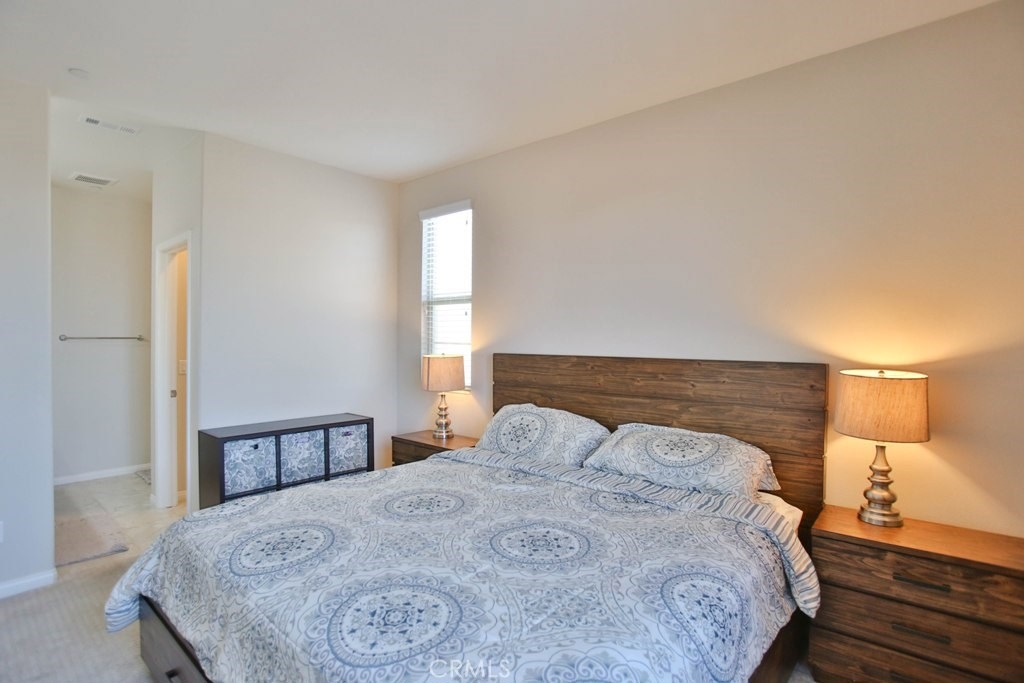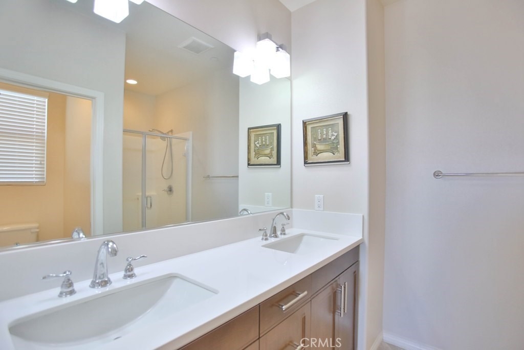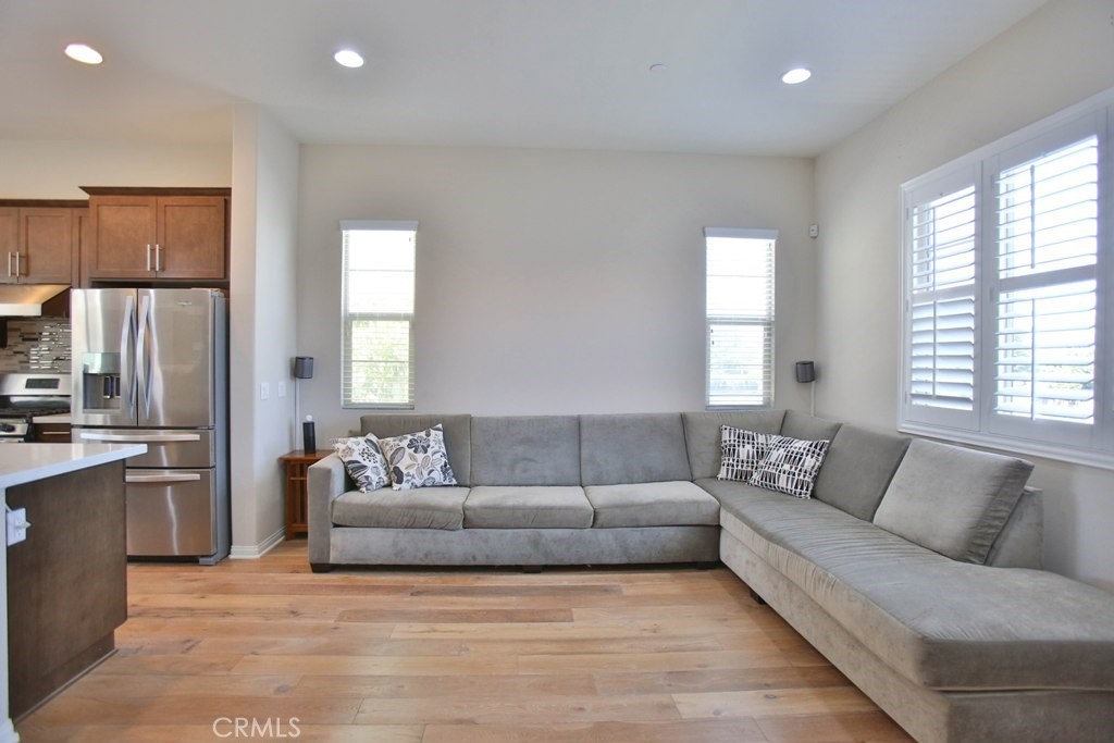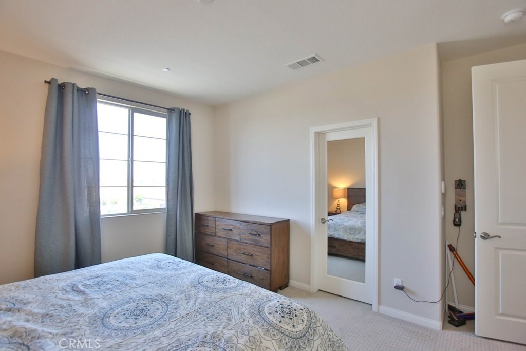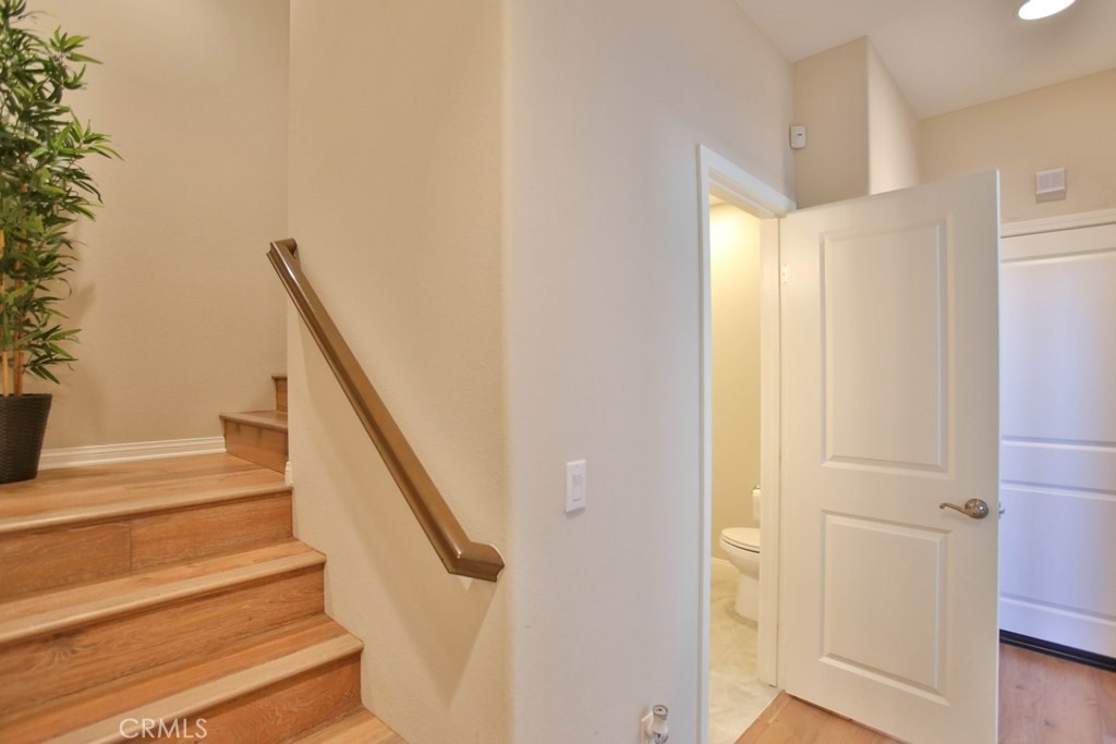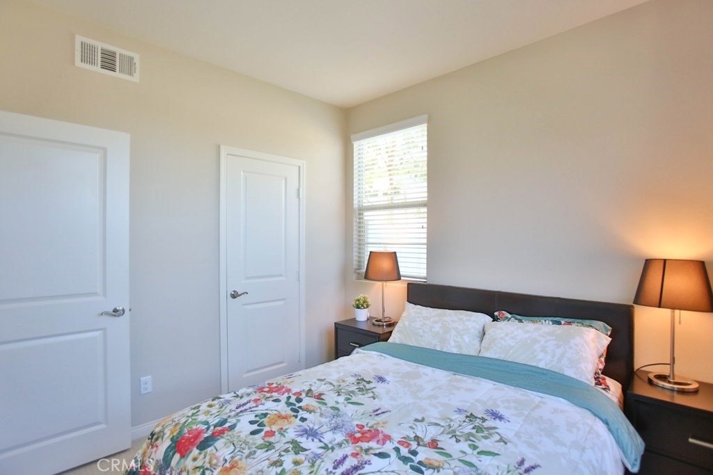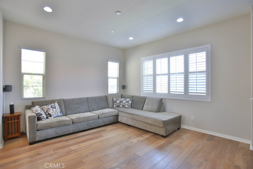 This beautiful, newly built detached home is fully equipped with many upgrades: large entertaining island with quartz countertops, stainless steel appliances, window shutters, hardwood floors, premium carpet in all the bedrooms, water softener system, filtered water system and is wired for an alarm system. As you walk into this luxury modern home, you will see a private front yard with a beautiful garden. The first level entry way has the guest bedroom with an adjacent full bathroom and quick access to a spacious 2-car garage. Take the stairway to the second level you'll find an open concept living and entertainment area with a 10 foot high ceiling, dining area and kitchen. The kitchen offers a huge island with quartz countertops, pantry and plenty of cabinet storage, 1/2 bathroom/powder room, and a private balcony just off the dining area. Take a second stairway to the top floor you'll find two spacious private master suites with dual vanities and a full bathroom. In the hallway between the two master suites, you'll find extra storage cabinets and a closet with stackable washer and dryer units. You will adore every piece of this home. The community is also well maintained with plenty of guest parking, low HOA dues and no Mello Roos. Restaurants and shopping areas are within walking distance and access to the 5 and 91 freeway are just minutes away.