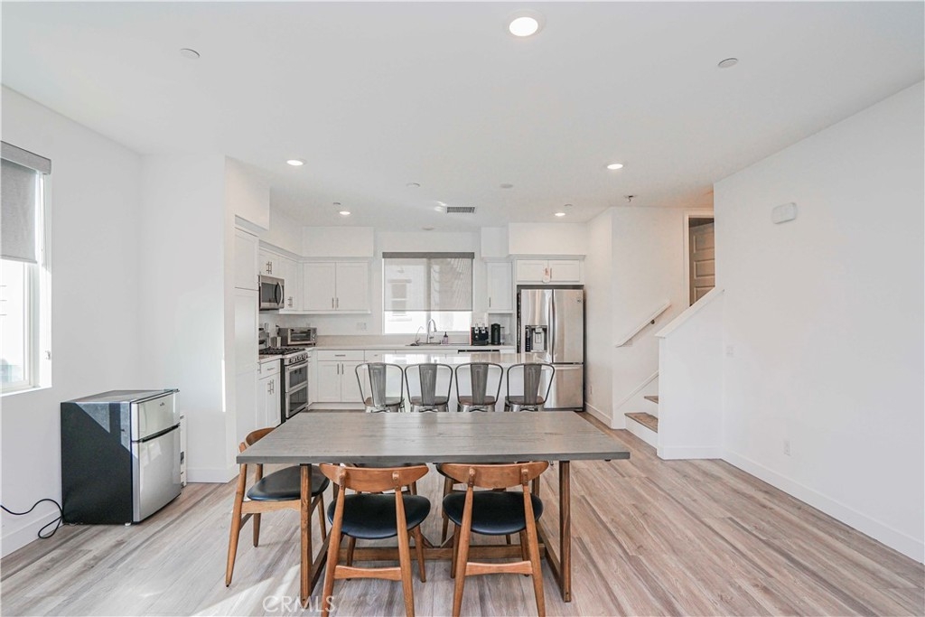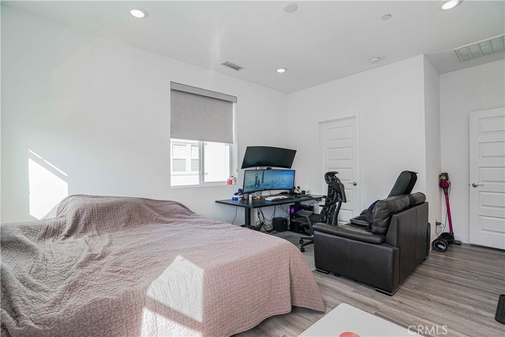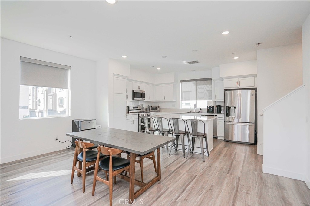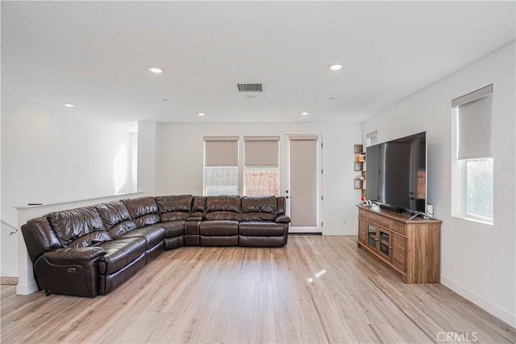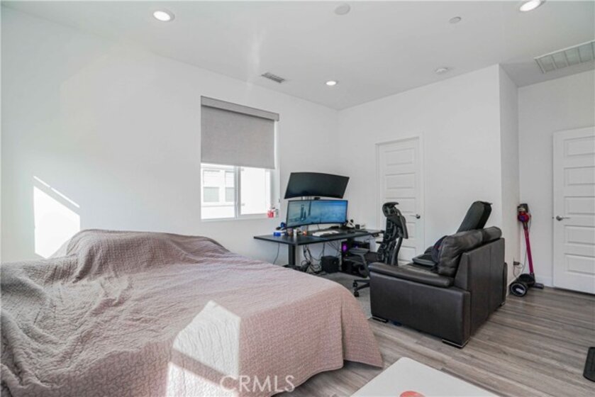 Experience elevated modern living in this beautifully upgraded 2021-built townhome at Townes at Magnolia by Melia Homes, thoughtfully designed for today’s lifestyle.Spanning three levels, this flexible floorplan offers four bedrooms, including an oversized bonus room created by combining two bedrooms—ideal as a media room, office, gym, or flex space. For buyers who prefer a traditional layout, the space can easily be converted back to a true four-bedroom configuration. The entry level features a private bedroom with a full bathroom, perfect for guests, multi-generational living, or a dedicated home office, along with direct access to a finished two-car side-by-side garage equipped with an EV charger.The main living level showcases an open-concept layout filled with natural light, luxury vinyl plank flooring, custom paint, modern light fixtures, and custom window coverings. The chef-inspired kitchen is appointed with quartz countertops, a large island with bar seating, stainless steel appliances including a Samsung 3-door refrigerator, and ample cabinetry for storage. A dedicated dining area, additional bathroom, side-by-side laundry, and a private balcony complete the space Upstairs, the spacious primary suite features a walk-in closet and a spa-inspired ensuite bath with dual vanities and a tiled shower. Additional highlights include central A/C, forced-air heating, a tankless water heater, whole house fan, solar panels, EV charging capability, and integrated smart home features such as Brilliant Home Control, Ring video doorbell, smart thermostat, and smart lock — delivering both energy efficiency and modern convenience. Residents of Townes at Magnolia enjoy community recreational areas, BBQ facilities, and a tot lot, all in a central Anaheim location with easy freeway access and close proximity to shopping, Dad Miller Golf Course, and Knott’s Berry Farm.This turnkey, energy-efficient townhome offers modern comfort, flexible living, and long-term practicality in one of Anaheim’s most desirable newer communities.