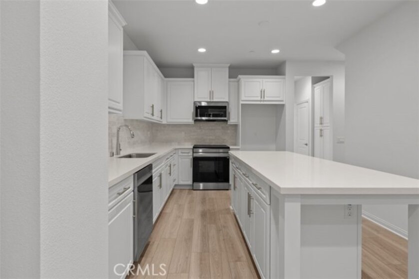 Discover modern living in this stylish, three-story home, which showcases an open floor plan with luxury vinyl plank flooring and 9-ft. ceilings at main floor. Upstairs, the chef's kitchen boasts an island, thermofoil cabinets, Iced White quartz countertops, custom tile backsplash and Samsung® stainless steel appliances. The third-floor primary bedroom features a walk-in closet, plush carpeting, balcony and connecting bath that offers marble countertops, a dual-sink vanity, walk-in shower and ceramic tile flooring. Additional highlights include a balcony, solar energy system, LED lighting, electric charging station and smart thermostat. See sales counselor for approximate timing required for move-in ready homes. Conveniently located to I- 5, Hwy 91, and Hwy 57. Close to Disneyland, Knotts Berry Farm, and near Cal State Fullerton.