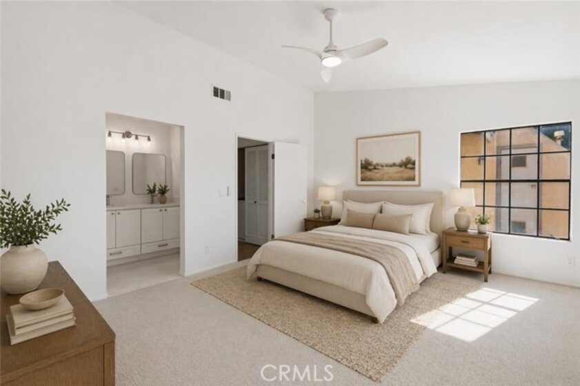 Welcome to 2609 W Cameron Ct., Unit 224, Anaheim—a well-maintained 2-bedroom, 2-bathroom single-story upper end unit offering comfort and privacy. The primary bathroom was completely remodeled, fresh paint, updated flooring throughout, new lighting, 2 car garage and community pool! This light-filled home features cathedral ceilings, an oversized primary bedroom, and a private balcony. The fully remodeled kitchen adds modern style and functionality, complemented by a convenient indoor laundry area. Located in a quiet community, the HOA provides well-maintained grounds and common area upkeep for easy living. Ideally situated near schools, shopping, dining, and freeway access.