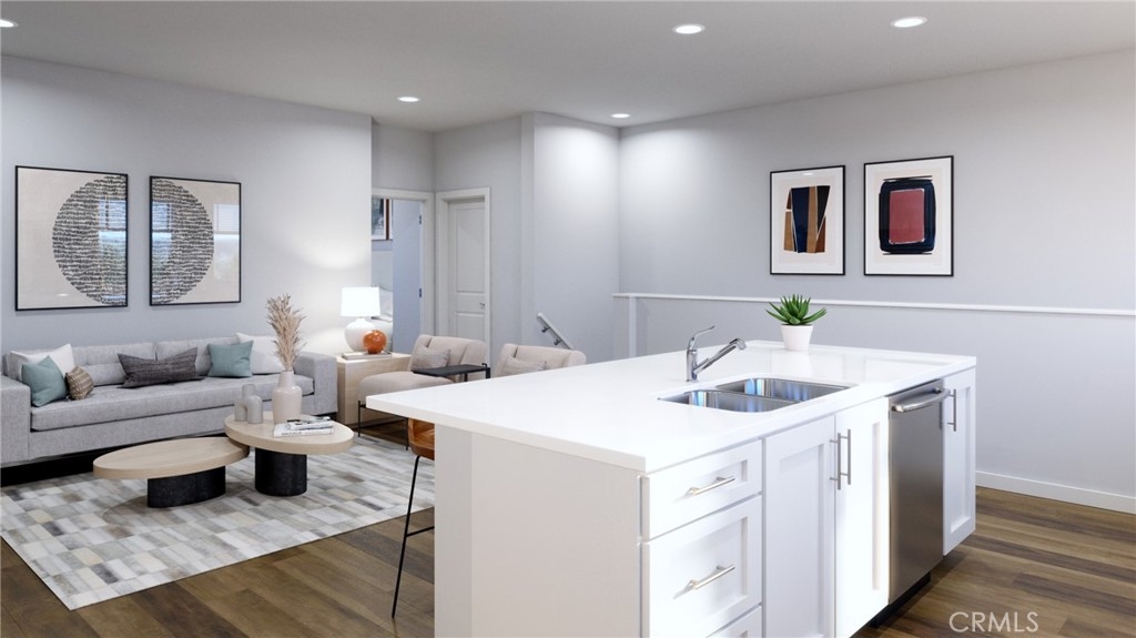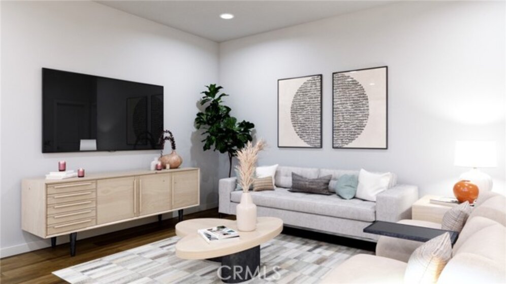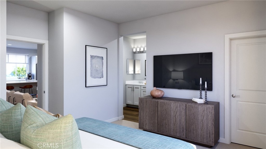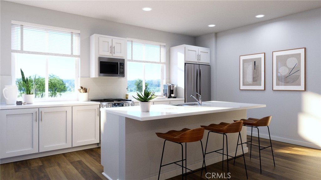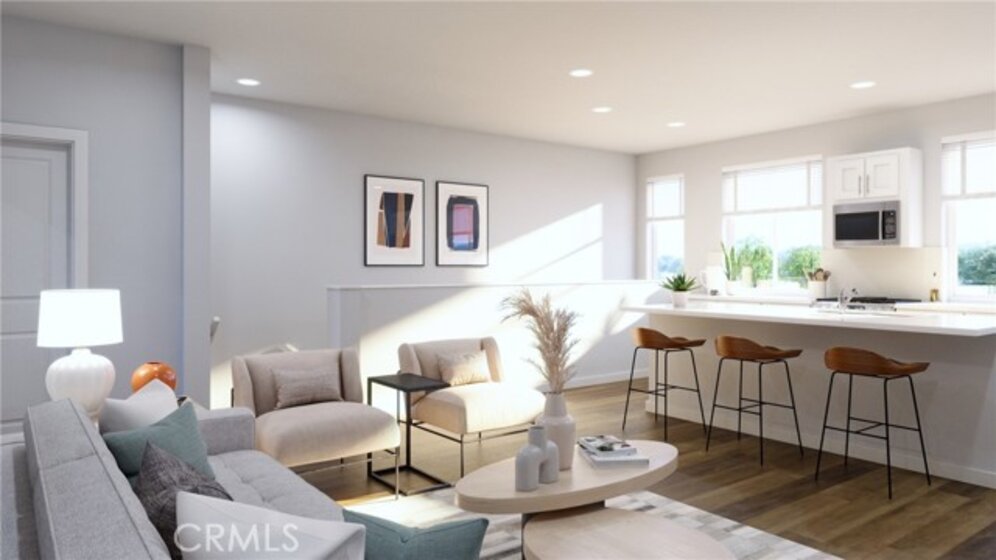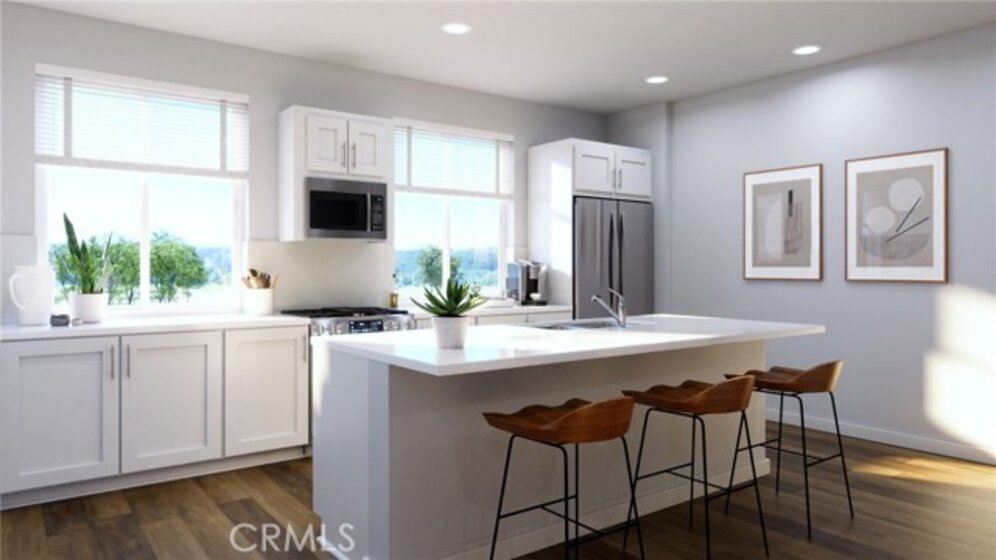 TURN KEY TOWNHOME, PRIVATE LOCATION AND Ready for quick move-in! New construction in Anaheim, this TWO STORY townhome design offers 2 bedrooms both with direct access bathrooms- one on the entry level and one on the second story upstairs. Open concept design with a great room with gourmet kitchen - including island with new stainless steel appliances. Plus a direct access , two-bay, two car garage! The home includes Luxury Vinyl Plank flooring, designer selected carpet, quartz countertops with upgraded backsplash, all new appliances and more! See video link for tour of actual home. Pictures are artist rendering