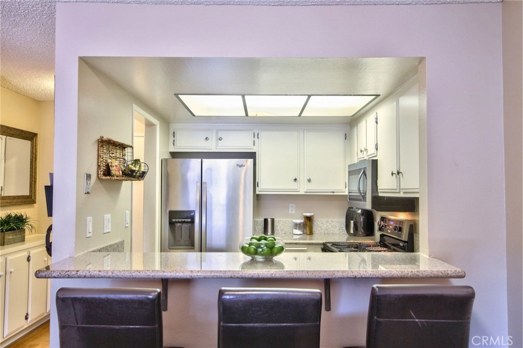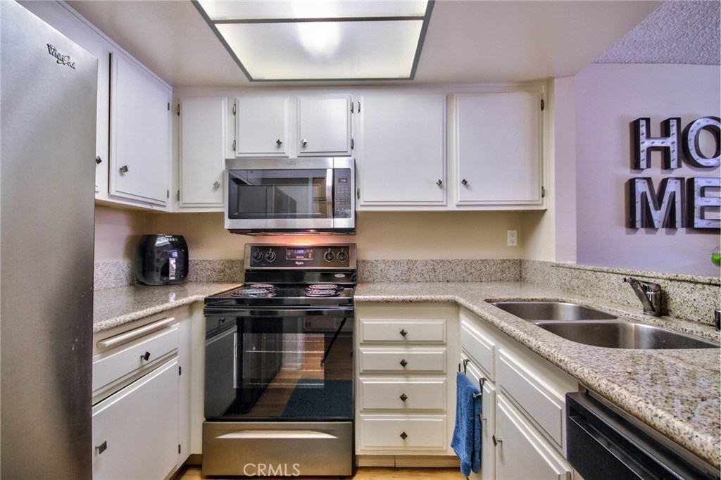 Absolutely adorable and immaculate condo in a great location and complex. As you enter this well decorated condo you will find a spacious cove with storage, an upgraded kitchen with white cabinets, granite countertops, Stainless steel stove and dishwasher, kitchen opens to a breakfast bar overlooking dining-room and living area, laminate floors run through the entryway, kitchen and bathroom area, newer carpet throughout the rest of the condo, large living room includes a stylish faux brick wall accent and a slider out to a spacious balcony, bathroom includes a large vanity, separate area with toilet and full size shower/tub, a stylish framed mirror and faux brick wall accent, spacious master-bedroom has a walk in closet as well as a secondary mirrored closet, unit has a brand new AC unit, 1 designated under ground and gated parking spot, storage closet in parking area. Complex is centrally located to freeways, shopping, parks and is within 5 minutes of City Center. Complex also offers a lobby, clubhouse, pool, jacuzzi, gym, large laundry facility, lots of green grassy areas for your pet! This unit is going to go fast!