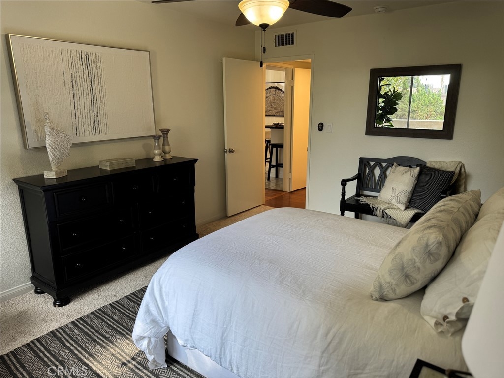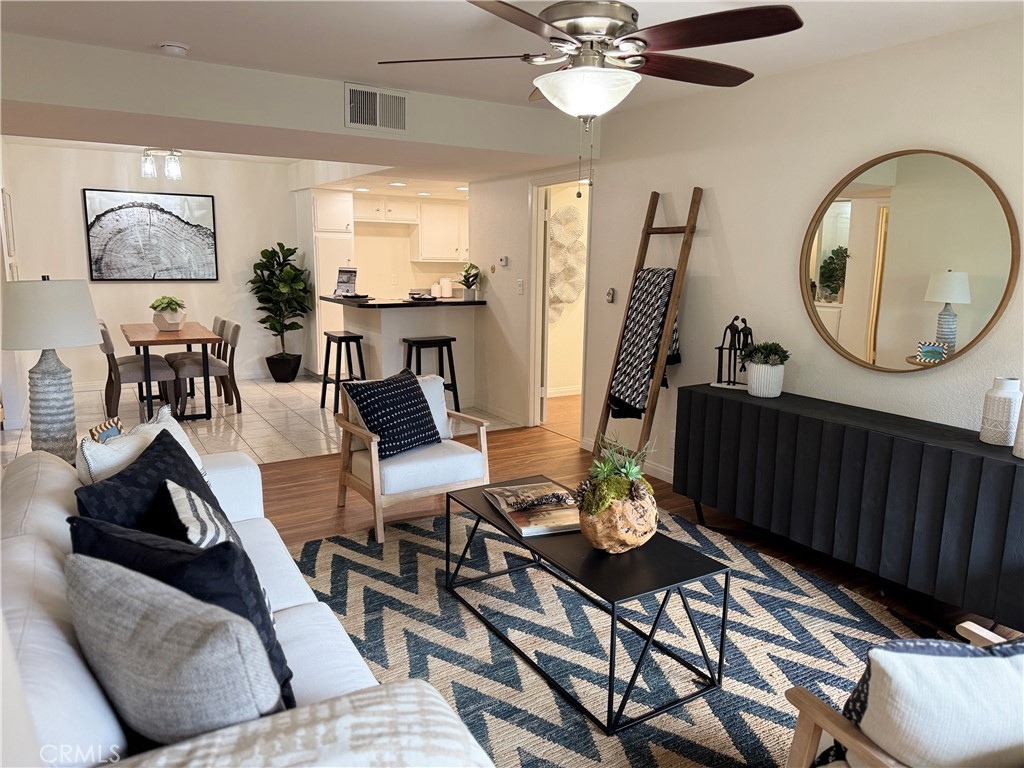 TOP FLOOR UNIT!! Ready to move in!!!Experience the perfect blend of comfort, style, and convenience in this stunning 3-bedroom, 2-bath penthouse condo. Situated on the top floor for enhanced privacy, this home spans approximately 1,180 sq. ft. and features a thoughtful layout with two separate suites. The primary suite includes a spacious bedroom with an ensuite bathroom for ultimate relaxation, while the opposite wing houses two bedrooms with a shared bathroom, offering privacy and versatility for family or guests. This condo showcases brand-new laminate wood flooring in the living, dining, and hall areas, complemented by plush new carpet in the bedrooms. Freshly painted throughout, the home exudes a clean and modern charm. Step outside to enjoy the expansive balcony, nestled among trees for a serene, secluded retreat. The property includes two dedicated parking spots and ample storage space. The community boasts exceptional amenities, including a clubhouse, sparkling pool, rejuvenating jacuzzi, well-equipped gym, billiards table, and plenty of laundry machines for your convenience. Ideally located near the 5 and 91 freeways, this property offers easy access to shopping, grocery stores, dining, and entertainment, with Disneyland just minutes away. Don’t miss this rare opportunity to own a stylish and centrally located penthouse retreat! THIS UNIT LIKELY QUALIFIES FOR BUYERS' ASSISTANT UP TO $30,000.