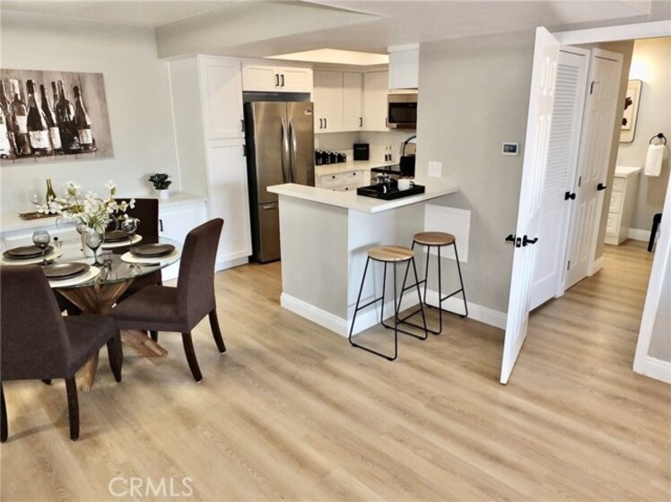 Welcome home to a remodeled 2 bedroom, 2 bath condominium where location and convenience says it all. This condo offers a fully remodeled kitchen featuring new sleek quartz counters and stainless steel appliances. This 1,074 sq ft condo has 2 bedrooms where one can be used as a guest room, home office, or a retreat. Both bathrooms are remodeled with the master bath having space to add a vanity or desk. New water-resistant and scratch-resistant luxury vinyl tile flooring throughout and freshly painted. New water heater and newer HVAC. The condo overlooks the zen area of the landscaped grounds and pool. This complex offers amenities such as a fitness center, clubhouse including kitchen, and billiard. The community laundry is updated with new washers and dryers. This condo also comes with 2 garage parking spaces and 2 storage units. Walking distance to many shops and restaurants at Anaheim Plaza, easy freeway access and a short drive to destinations like Disneyland, Knott’s Berry Farm, Honda Center and so much more!