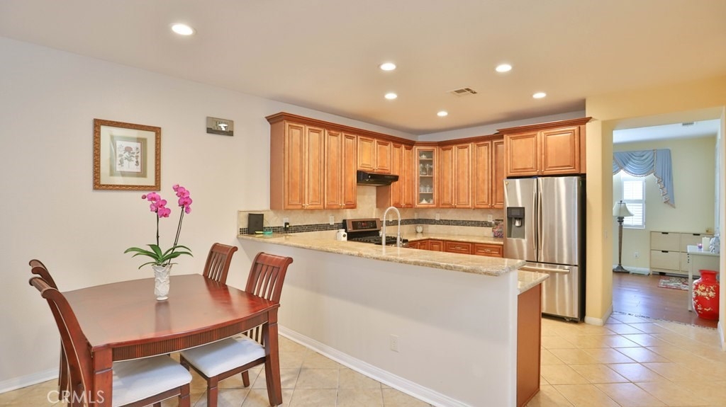 Sellers are motivated to sell. First time on the market!!! Take a look at this two story home with 4 bedrooms and 3 bath. Owner recently added new flooring and stairs. Spacious kitchen has been remodeled with new counter top and cabinet. Open floor plan with kitchen leading into the family room with newly added recess lighting. Property has two fireplace. One bedroom and bath located on main floor perfect for quest or elders. Second floor has 2 bedroom, 1 bathroom, master bedroom, master bath and office area. Master bath has dual vanity, walk in closet, shower, and bathtub. Laundry room located upstairs. Private patio perfect for the family barbecue. Two car attached garage for easy access. Located in a quiet neighborhood near a highly rated high school, Valencia High school. Near to major freeway 91, 57, 5, & 55 for ease of access.