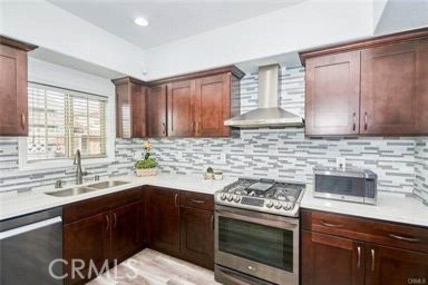Beautiful Lincoln Villa End Unit Townhome 3 Bedroom, 2.5 Bath, 2 car attached with direct access access, plus 1 assigned parking space, garden patio for summer meals & BBQ with family and friends. Contemporary California Design, upgraded kitchen features custom cabinetry, quartz counter tops, stainless steel appliances, including dishwasher, range/cooktop and vent hood, walk-in kitchen pantry. Spacious master bedroom with private balcony, walk-in closet, large master bathroom with dual vanity sinks, soaking tub, separate shower and compartmentalized water closet. Central A/C, recessed lighting, dual-glazed windows, convenient location, near schools, shopping, restaurants, grocery stores ,and regional attractions such as Knott's Berry Farm, Disneyland...