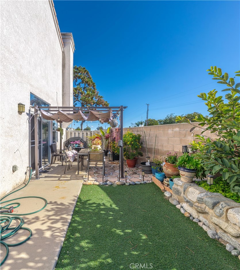 Westside Condominiums: This rarely available detached property features 3 bedrooms and 2.5 bathrooms. The home is bright and airy, boasting vaulted ceilings and an open floor plan. Enjoy elegance with French doors, plantation shutters, and roller shades throughout. The kitchen includes a serve-over bar, perfect for entertaining. The primary suite has its own ensuite bathroom and a spacious walk-in closet. Step outside to your private backyard, which is equipped with a retractable patio cover and side yard, ideal for lounging in the California sunshine, hosting family-style BBQ, or offering a peaceful retreat with no neighbors behind you. The HOA takes care of sewer and trash services, making life a little easier. Conveniently located near shopping centers, this property is also close to popular attractions such as Disneyland, Angel Stadium, the Honda Center, the Anaheim Convention Center, Knott's Berry Farm, as well as various restaurants and schools. Start the New Year with a fresh beginning in your new home!