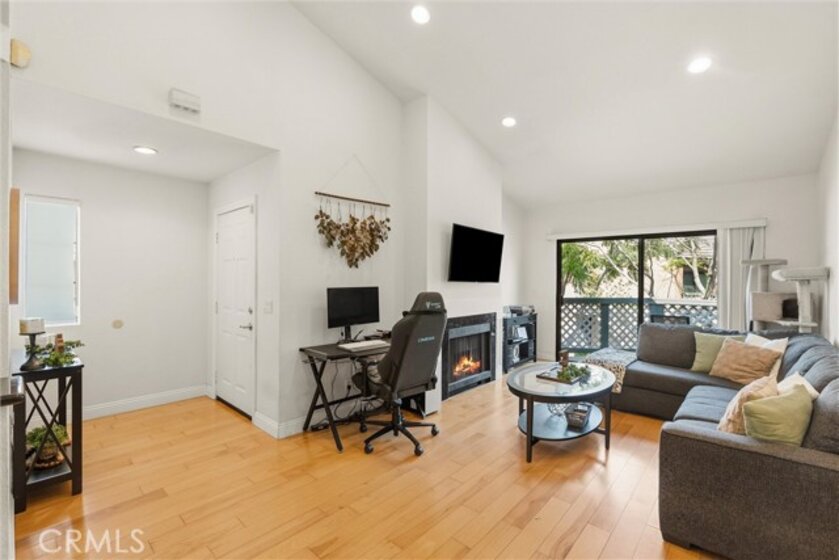 Welcome to this beautiful cozy well-maintained 2-bedroom, 2-bathroom condo located in the desirable Evergreen Village community in West Anaheim. This inviting home features modern kitchen surfaces, and vaulted ceilings that create a bright and open living space. The spacious primary suite includes a large bedroom with an ensuite bathroom, a walk-in closet. The second bedroom offers peaceful courtyard views, privacy, and ample closet space. A standout feature of the home is the northwest-facing patio deck—perfect for relaxing or entertaining while enjoying the tranquil, park-like courtyard setting within this quiet and well-maintained community. Additional highlights include a cozy gas fireplace in the living room, a formal dining area, a breakfast bar in the kitchen, central air conditioning and heating, wood flooring in the main living areas, and carpet in the bedrooms. The HOA provides excellent value, covering water, trash, internet, grounds maintenance, pool access, a one-car garage, and one additional assigned carport space. Conveniently located near major freeways including the 605, 405, 22, and 91, and just a short drive to the beach, this FHA-approved property is an excellent opportunity for first-time homebuyers seeking an affordable home in Orange County.