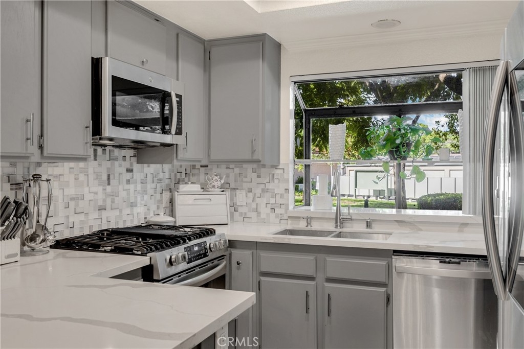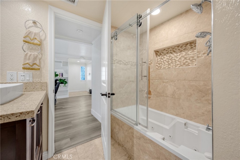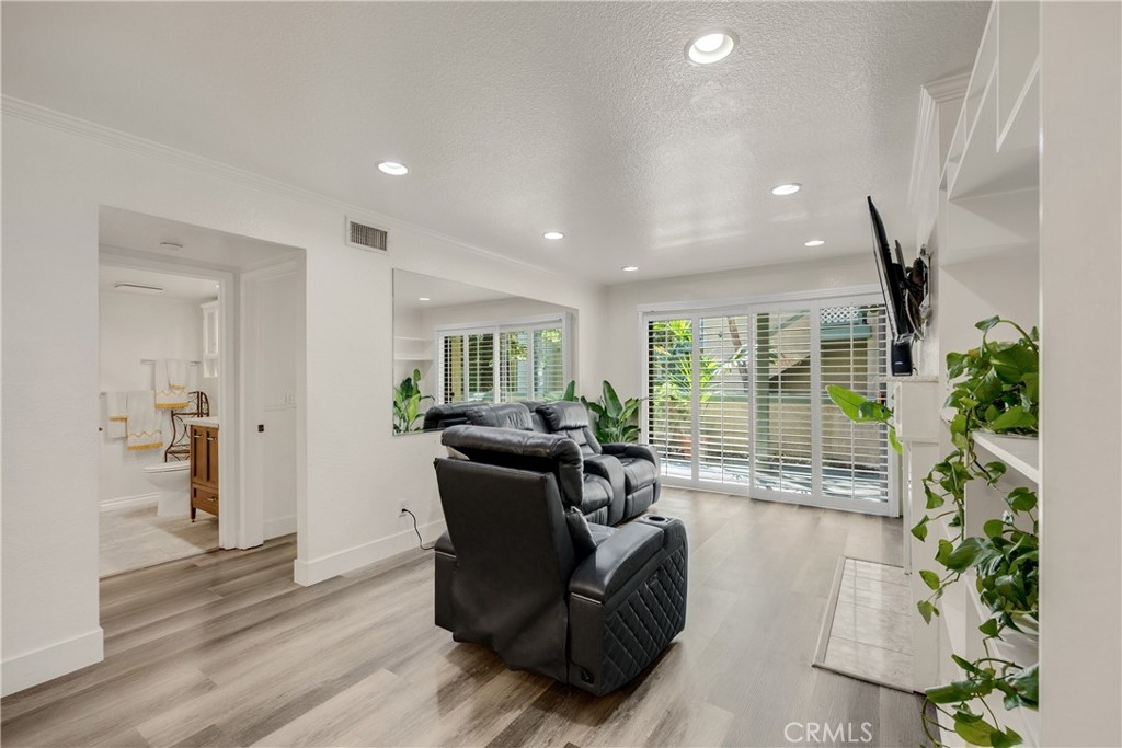 Don't miss out on this unique opportunity to own a lower-level, turnkey 2-bedroom, 2-bath condo in one of Anaheim's most sought-after subdivisions: Evergreen Village. 3537 Greentree Unit #A presents itself as an ideal choice for first-time homebuyers or even an elderly couple seeking to downsize, all without the hassle of repairs or the financial burden of home upgrades. The condo showcases a range of upgrades, including brand new laminate flooring and baseboards, quartz countertops, new bathroom vanities, new bathroom tile, and LED recessed lighting. Other thoughtful amenities include two assigned 1-car enclosed garages, a breakfast bar, an oversized outdoor patio, a private master suite patio, a dual-vanity master bathroom, a gas-burning fireplace, an in-unit washer and dryer, a kitchen bay window, a large guest bedroom closet, a walk-in master closet, and a built-in office. Nominal HOA fees ($360) are accompanied by a wealth of amenities that include mature trees, resort-style pools and jacuzzis, saunas, water, basic cable, trash, internet service, weekly grounds maintenance, and ample guest parking for visitors. The condo's location is equally impressive, offering quick and convenient access to Disneyland, Knott's Berry Farm, a variety of restaurants, shopping centers, gyms, and diverse entertainment options. In addition, 3537 Greentree #A is in one of the few condominium complexes in all of Orange County that is FHA/VA-approved and is also dog and pet-friendly. Make sure to stop by the open house on Sat (08/26) & Sun (08/27) from 1-4 PM before it's too late. This is one you won’t want to miss!