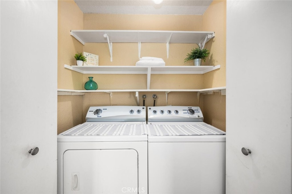Welcome to Evergreen Village - Your Perfect Retreat Discover the serenity of Evergreen Village, nestled in a park-like setting with mature tree growth and abundant HOA amenities. This two-bedroom, two full bath home, offers the ideal blend of comfort and convenience, situated upstairs with no neighbors above or below. Key features: TWO- One-Car Garages: Includes newer metal roll-top doors with remotes and pin pad, providing ample space and security for your vehicles and property. California Indoor-Outdoor Living: Enjoy two large sliders leading to a spacious patio, perfect for embracing Southern California's indoor-outdoor lifestyle. Upgraded Kitchen: BRAND NEW Whirlpool refrigerator, stove and microwave. Home also includes an existing dishwasher (new in 2023), and washer and dryer, ensuring modern convenience. Comfort and Efficiency: NEW HVAC system and AC condenser in 2020. Beautiful flooring throughout, enhances comfort and efficiency. Master Bedroom Retreat: Features an expansive walk-in closet. The living room offers a cozy gas fireplace, ideal for relaxation during colder months. Community Amenities: Evergreen Village offers resort-like amenities including two pools, jacuzzis, saunas, a dog run, and a horseshoe pit, promoting a carefree lifestyle. Location Highlights: Centrally located at the border of Cypress and near Los Alamitos, with easy access to Orange and Los Angeles County. Nearby Attractions: Close proximity to Larwin Park, Los Alamitos Navy Golf Course, Knotts Berry Farm, El Dorado Park, Disneyland, Anaheim Packing District, and more. Convenient Access: Central to major freeways including 605, 405, 22, and 91, making commuting effortless. HOA Benefits: Low HOA fee of $387 includes water, trash, internet, and cable TV with Showtime, ensuring exceptional value and convenience. Don't Miss Out: Experience the lifestyle you deserve at Evergreen Village. Whether you're relaxing at home, exploring local attractions, or enjoying community amenities, this residence offers the perfect blend of comfort and convenience.