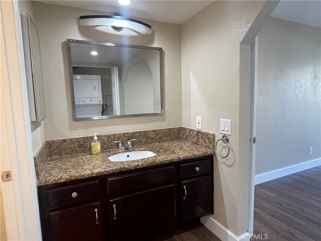 Beautiful Condo Unit in the Evergreen Village Condo complex on the ground floor. This corner unit condo has been fully upgraded including granite counters in kitchen, scraped ceilings throughout, recessed lights, and air conditioning. Two sliding patio doors leading to balcony from family room and main bedroom. Newer modern tile flooring throughout the unit along with upgraded-remodeled bathroom. Washer and dryer are also located in the home. Condo has an attached single car garage with direct access and also includes an extra carport parking spot. Community pool and jacuzzi located directly across from balcony. Must see for an amazing move-in condition condo. HOA'S cover water, trash, cable tv and other ammenities.