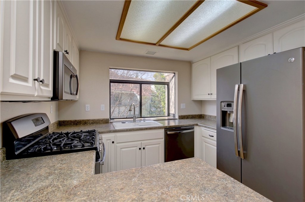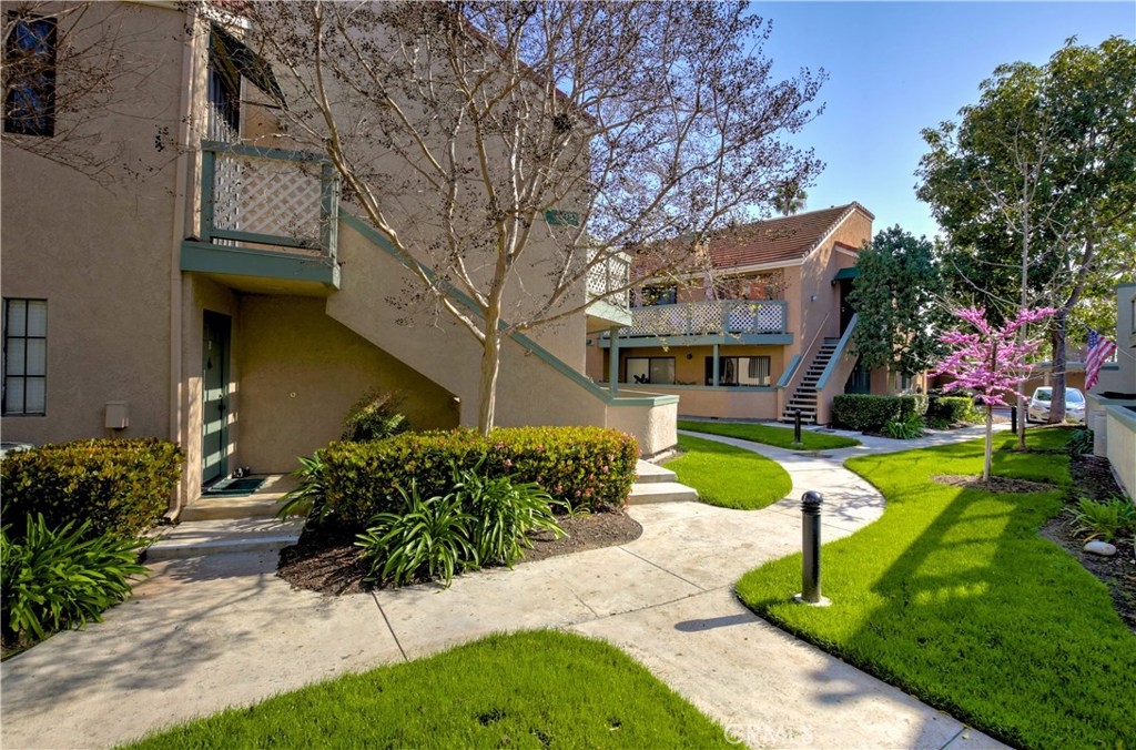 Welcome to Greentree Village, Anaheim. This is a 2 bedroom upstairs unit with arguably one of the best locations in the complex. 1 Car garage with tandem parking spot behind it, close guest parking and a short distance to the pool area. Fresh Paint, brand new laminate flooring throughout, new fixtures, and new bathroom vanity. Home has forced air heat as well as AC. Inside laundry, fireplace, and balcony off the living room and bedroom.This property is truly turnkey, move right in!