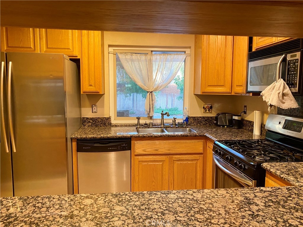 This charming end unit features 3 Bedrooms and 1 Bath and is great for the first time homebuyer or empty nester! Open floorpan with granite countertops in kitchen that flows into the dining and living areas. Master bedroom is very spacious and private. Enjoy dining outdoors in the private gated patio with plenty of room for barbecueing and entertaining. The attached 2 car garage has been converted into an indoor laundry room, 3rd bedroom and storage closet. This unpermitted space can easily be turned back into garage space. Newer A/C, Heater, and Water Heater. Community features pool and clubhouse. There is ample guest parking throughout the community. Easy access to 55 and 91 freeways as well as parks and shopping.