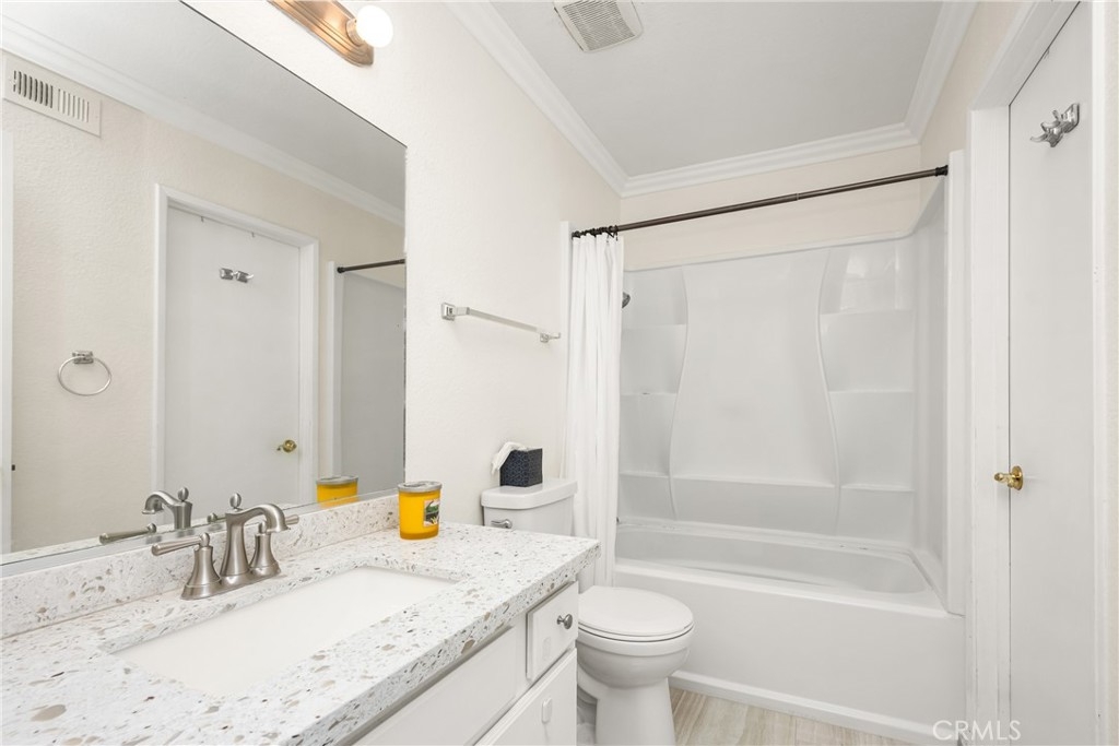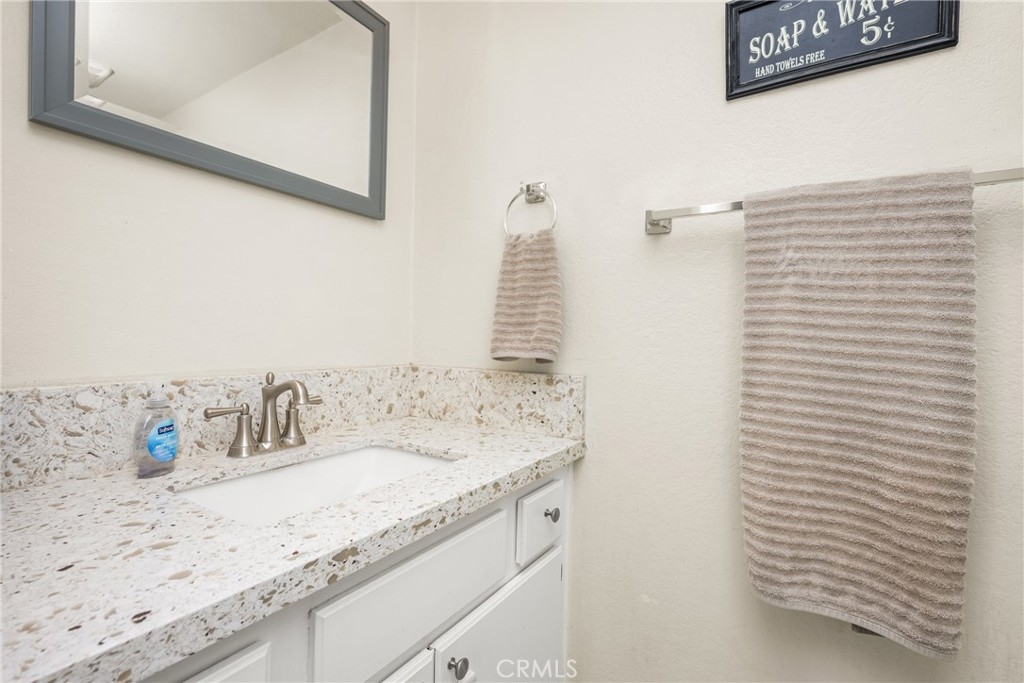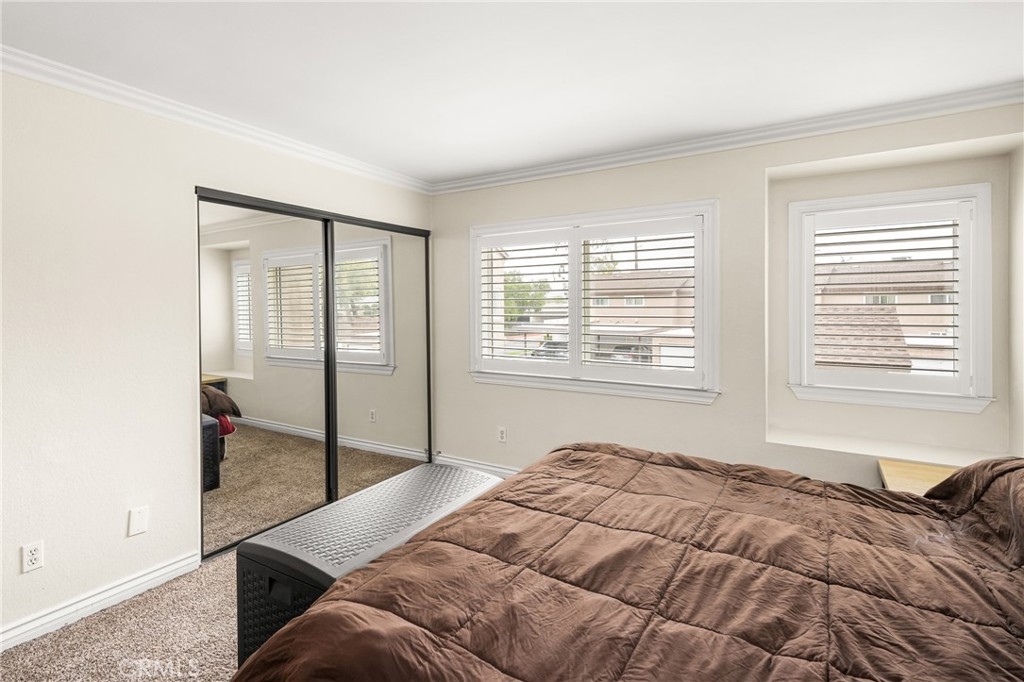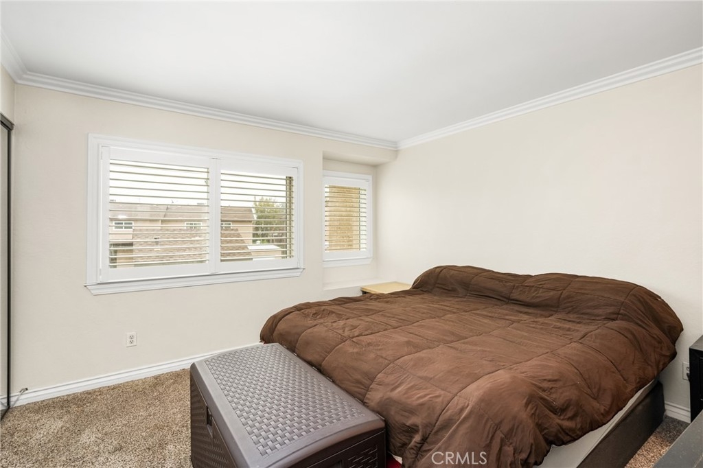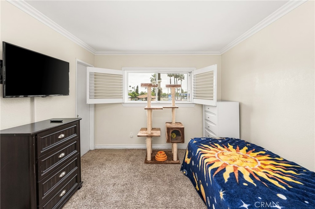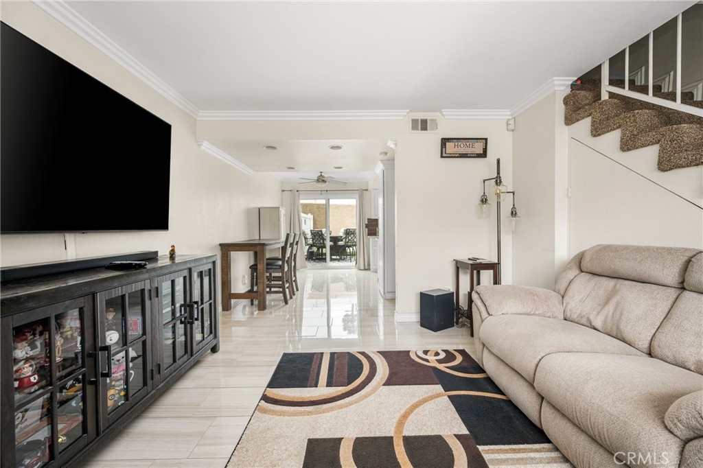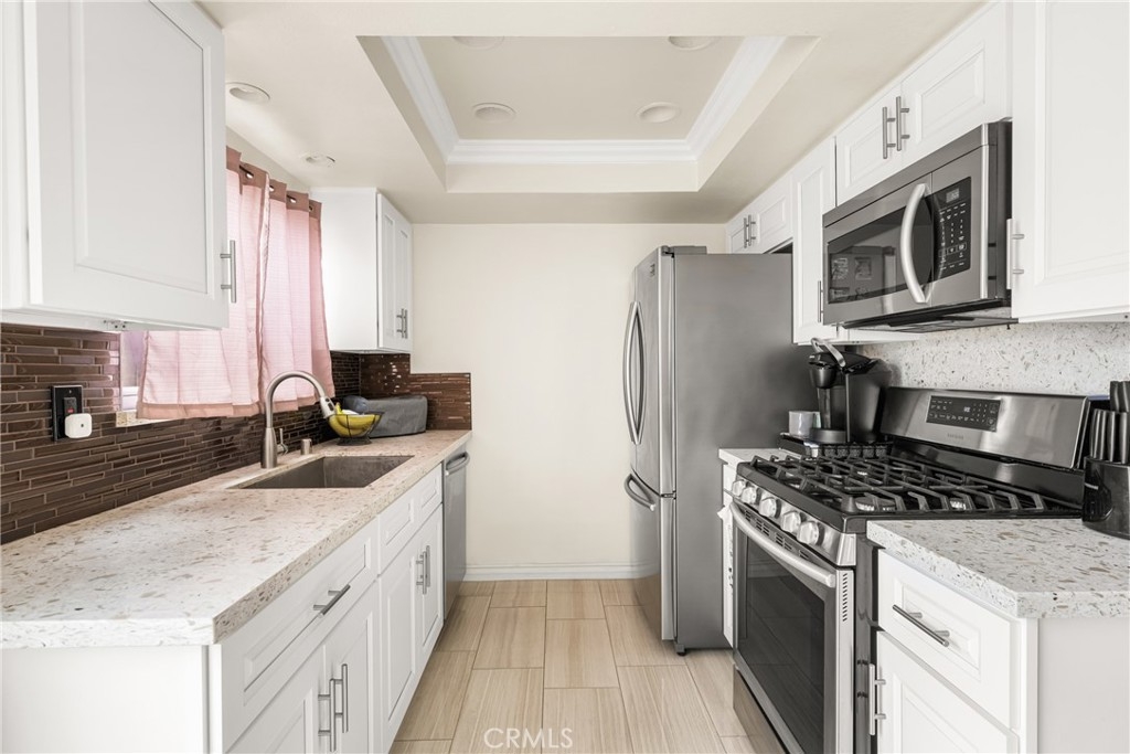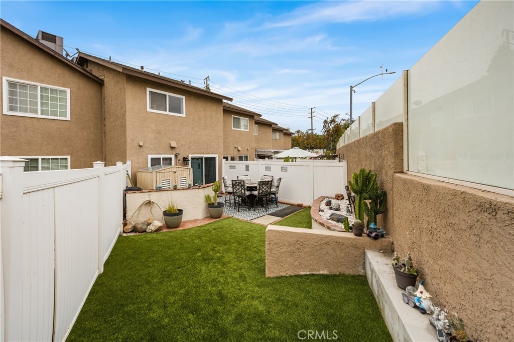 Welcome to this stunningly upgraded condo nestled in one of Anaheim’s most ideal and convenient gated communities. This residence features two spacious bedrooms and one-and-a-half remodeled bathrooms, offering both comfort and style. The beautifully renovated kitchen boasts sleek quartz countertops, white shaker cabinets, and stainless steel appliances—perfect for cooking and entertaining. Downstairs, enjoy elegant ceramic tile flooring, while upstairs features luxury carpeting for a cozy touch. Crown molding, recessed lighting, double pane windows, plantation shutters, and upgraded baseboards add to the home’s refined charm. Additional upgrades - newer central air conditioning and water heater. Added conveniences - laundry hookups, detached garage and assigned parking. Step outside to one of the largest backyards in the community—ideal for outdoor gatherings, gardening, or relaxing in your private oasis. The community offers exceptional amenities including a sparkling pool, spa, and clubhouse, all within a well-maintained gated neighborhood. Don’t miss this incredible opportunity to own you own home!
