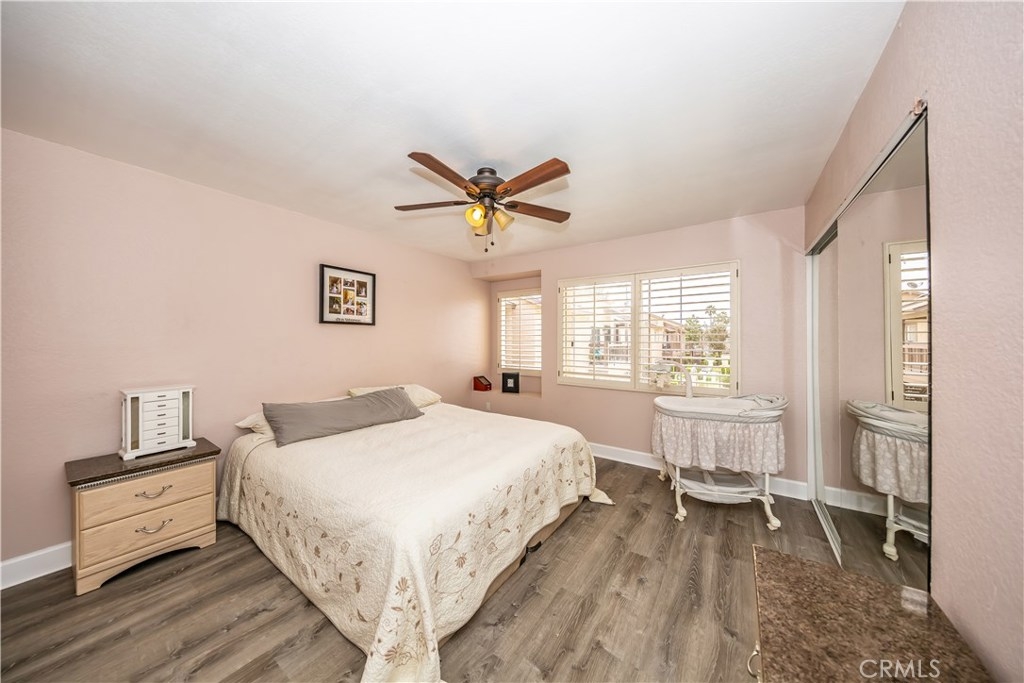 Welcome to the charming "Pinetree Village" community. As soon as you walk into this bright and airy townhome, you begin to feel a warm home feeling. You will immediately notice the beautiful laminate wood flooring throughout the living room which features built-in shelves under the staircase. The living room is very spacious and has a lot of natural light coming in from the big windows. Head on over to your bright and spacious kitchen where you'll find all newer appliances -- that were replaced 3 years ago-- white cabinets, and stainless steel sink. Also featuring on the bigger patios in the whole community where you can find a built-in BBQ perfect for entertaining and comes with its own gas line! Talk about convenience! Brand new waterproof laminate wood flooring has been installed both the bedrooms with a 10-year warranty. Both also have ceiling fans and newer paint. There are also plenty of great amenities in your community such as a pool, clubhouse, and laundry very close-by. The community is under new property management which has replaced the roof 2 years ago, newer paint and will be updating the laundry & clubhouse. Conveniently located near Eisenhower Park, Grocery Stores (Vons & Walmart, Target), Restaurants (Denny's, Olive Garden, Red Robin's), Schools, and Entertainment. Don't miss out on this rare opportunity!