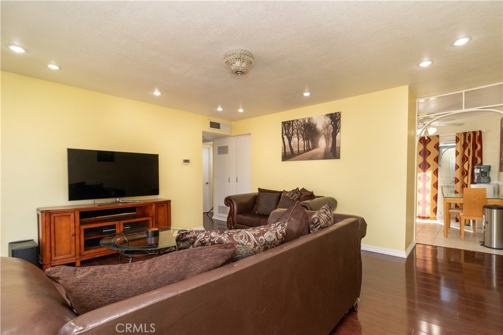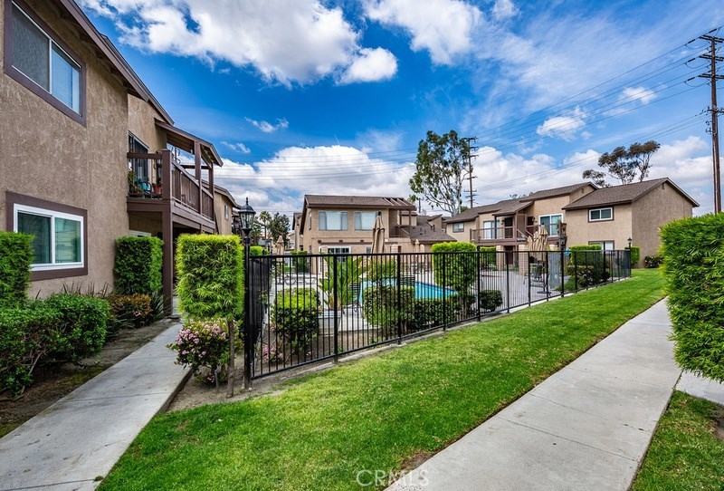 Welcome to the charming "Pinetree Village" community. As soon as you walk into this beautiful bright and airy upstairs condo, you begin to feel a warm home feeling. You will immediately notice the beautiful laminate wood flooring throughout the living room. The living room is very spacious and has a lot of natural light coming in from the sliding door. Head on over to your bright and newly painted kitchen, white cabinets, and recessed lighting. Not to mention you have a washer/dryer in your very own kitchen... Talk about convenience! Right off to the side, you have a private balcony that looks out to a beautiful knoll. Both bedrooms have plenty of space, offer recessed lighting, and laminate wood floors. There are also plenty of great amenities in your community such as a pool, clubhouse, and community laundry very close-by. The community is under new property management which has replaced the roof 2 years ago, newer paint and will be updating the laundry & clubhouse. Conveniently located near Eisenhower Park, Grocery Stores (Vons & Walmart, Target), Restaurants (Denny's, Olive Garden, Red Robin's), Schools, and Entertainment. Don't miss out on this rare opportunity to be apart of this beautiful tight-knit community!