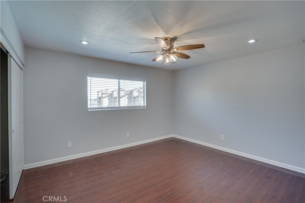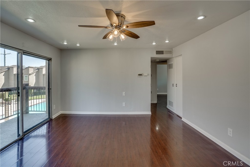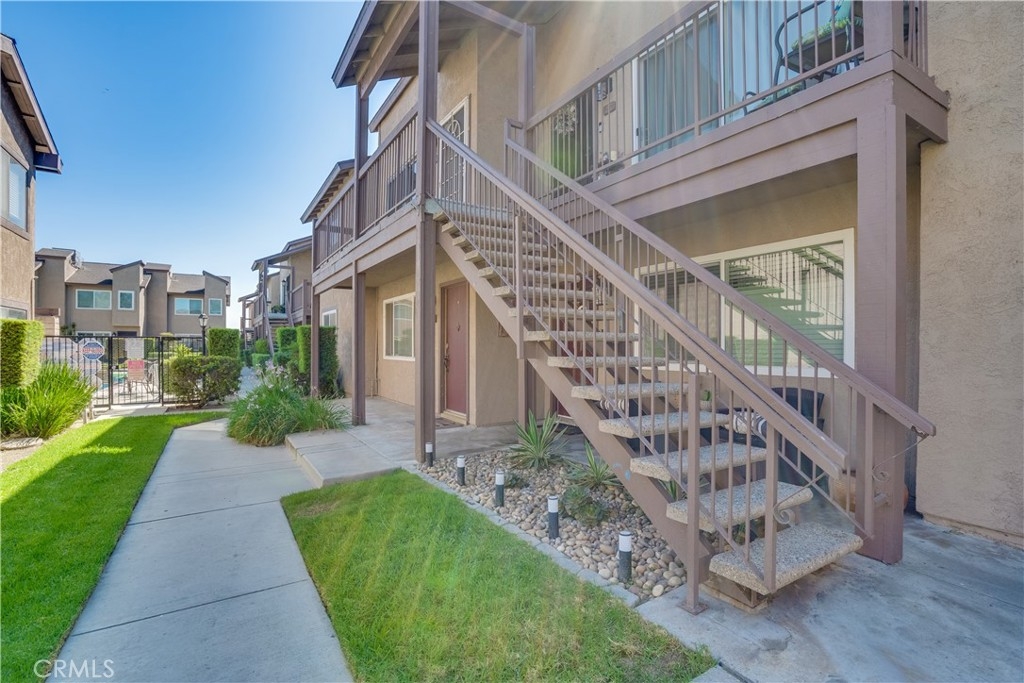Welcome to this adorable two bedroom condominium nested in the gated community of Pinetree Village. Front balcony overlooks the sparkling pool and club house. Step inside to a spacious living room. The kitchen has a sliding glass door leading out to a second balcony. Washer and dryer hook ups are in the kitchen area as well for added convenience. The master bedroom and living room have new ceiling fans with lights. Located just minutes from the 91 and 55 freeways, Metrolink, shopping and restaurants. Community features include gated entrance, pool, spa, clubhouse and extra laundry area.