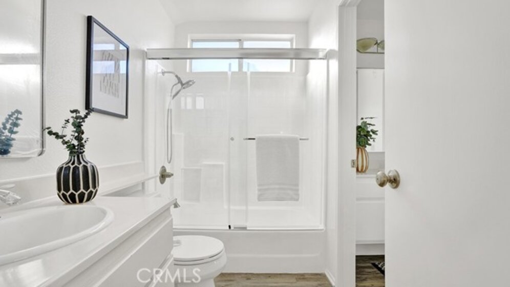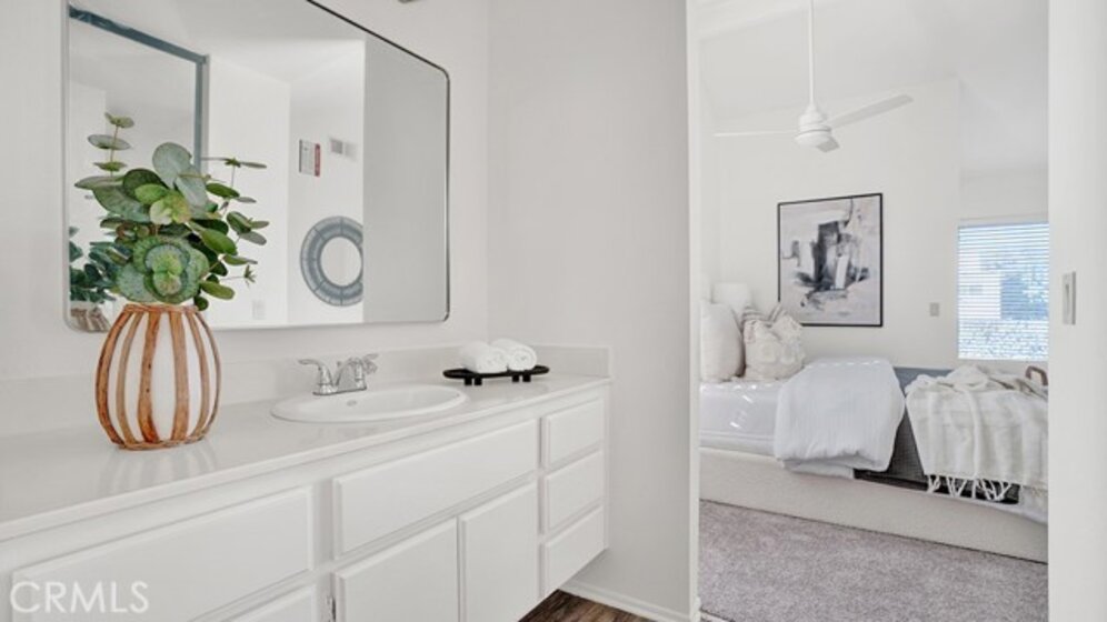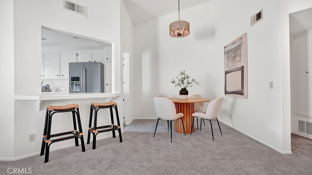 Set within the Stanford Court community in Anaheim, this light-filled two-story home blends calm, modern styling with an easy, low-maintenance lifestyle just minutes from Disneyland, Knott's Berry Farm, everyday conveniences, and major freeway access. Vaulted ceilings lift the space from the moment you enter, creating an open, airy feel throughout most of the home, while fresh paint and brand-new carpet give everything a clean, welcoming finish. The kitchen thoughtfully refreshed—with all appliances included and a layout that stays connected to the living space without sacrificing function. Upstairs, the primary bedroom feels like a true retreat with vaulted ceilings, a generous walk-in closet, and an overall sense of quiet separation from the day’s activity, while the secondary bedroom offers flexibility for guests, a home office, or creative space. Practical upgrades add peace of mind, including a newer HVAC system, newer water heater, and smart thermostat. Outside, a charming patio offers a relaxed spot to unwind or entertain, blending privacy with a neighborhood feel that keeps the community connected. An oversized, side-by-side two-car garage with direct access provides room for storage, hobbies, or a workbench, and ample guest parking makes hosting easy. Residents also enjoy access to a community pool and well-kept common areas, all surrounded by some of Anaheim’s best dining, shopping, and entertainment options. Come see this beautiful home in person to experience all it has to offer.