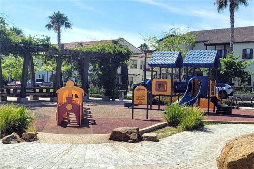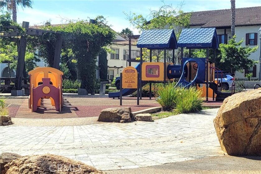 A detached townhouse, side unit with no shared common walls at the Colony Park! The Colony Park community offers three resort like community pools, cabanas, family park, playgrounds, private dog park, round the clock security, a 24 hour fitness center, and BBQ areas. Convenient pick up location to the Fran (Free Ride around the Neighborhood). A spacious unit with 1648 square feet living spaces, 3 bedrooms and 2.5 bathrooms. Attached two car garage. Private courtyard. Central A/C. In unit laundry hook-ups. Bright and airy. Old carpet has been replaced with wood-like flooring.