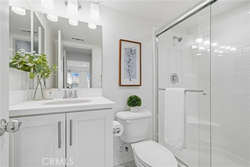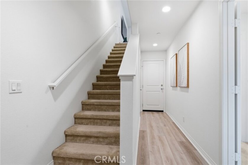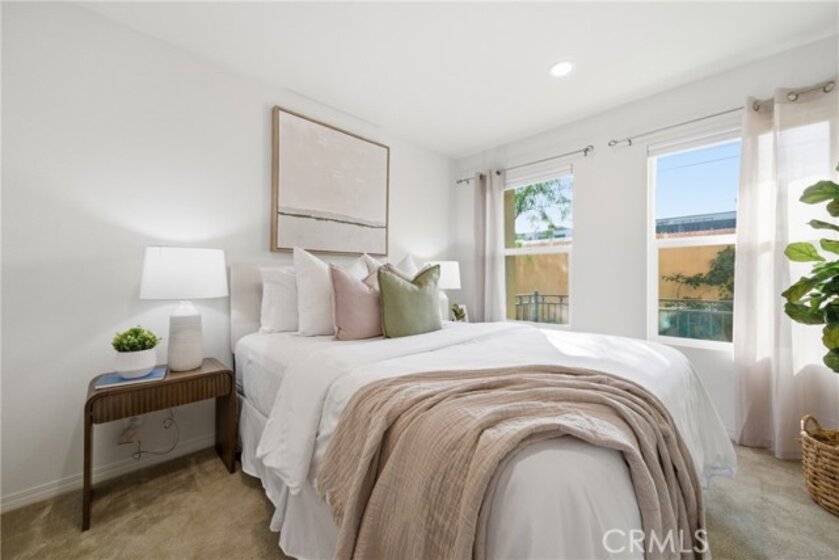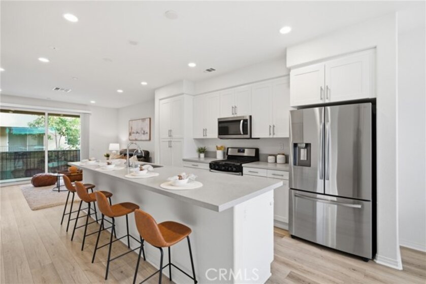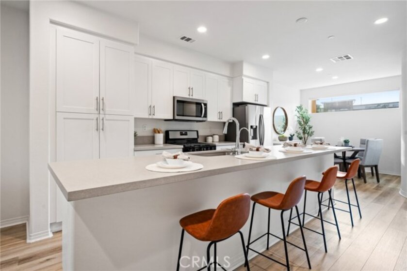 Welcome to 677 South District Way — a modern tri-level gem in the sought-after District Walk community of Anaheim. Built in 2019, this 3-bedroom, 3.5-bath home offers 1,678 sq ft of stylish living with thoughtful design and contemporary touches throughout. Step inside to find a private first-floor suite—perfect for guests, in-laws, or a home office—along with an attached two-car garage equipped with epoxy flooring, a tankless water heater, and a water softener system. Upstairs, the open-concept second floor showcases a spacious living area with a private balcony, a gourmet kitchen featuring sleek finishes, a separate dining space ideal for entertaining and a half bath. The third floor features two additional bedroom suites, including a primary retreat with a large walk-in shower and walk-in closet, plus a secondary suite with its own full bath. Convenient upstairs laundry adds everyday ease. Located just minutes from premier shopping, dining, and world-famous Disneyland, this home offers the perfect blend of comfort, convenience, and community. Come experience modern Anaheim living at its finest!