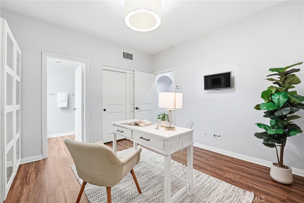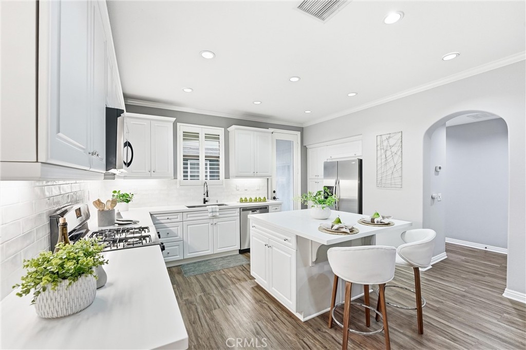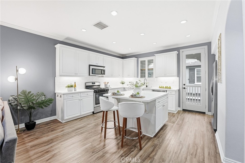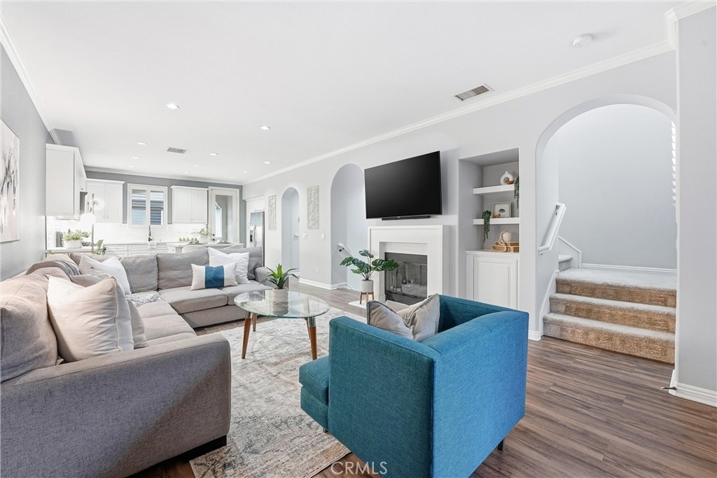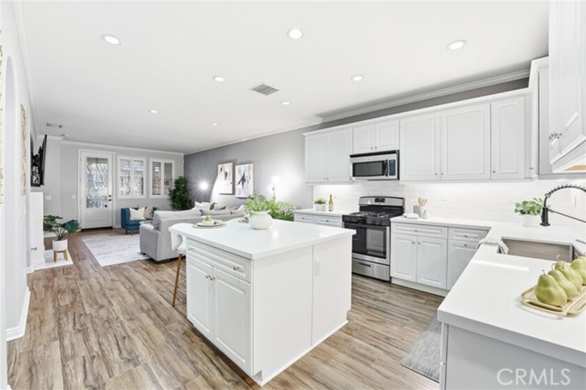 Welcome to 755 S Kroeger St, a thoughtfully designed three-story townhome offering a flexible layout, modern finishes, and a prime location near the Anaheim Packing District. One of the home’s standout features is the ground-floor bedroom with a full bathroom, ideal for guests, multigenerational living, or a private home office. Direct access to the attached two-car garage adds everyday convenience rarely found at this price point. The second level is the heart of the home, featuring a bright, open-concept living space designed for both daily living and entertaining. The kitchen centers around a large quartz island and includes white cabinetry, stainless steel appliances, and a classic subway tile backsplash. The kitchen flows seamlessly into the dining and living areas, highlighted by wood-style flooring, plantation shutters, and abundant natural light. A conveniently located half bath and laundry closet complete this level. Upstairs, the spacious primary suite provides a comfortable retreat with an en suite bathroom, while the third bedroom offers additional flexibility for work-from-home needs, guests, or creative use. The home has been thoughtfully curated with a clean, modern aesthetic that feels both current and timeless. Outdoor spaces include a welcoming front porch and a second-floor balcony, perfect for morning coffee or winding down at the end of the day. The community offers resort-style amenities including a pool, fitness center, clubhouse, dog park, playground, and walking paths set among lush landscaping. Located just moments from the Anaheim Packing House, Center Street Promenade, local dining, entertainment, and major freeways, this home delivers a lifestyle that balances walkability, comfort, and convenience. Whether you’re looking for a versatile floor plan, a low-maintenance lifestyle, or a home that adapts to the way you live today, 755 S Kroeger St is ready for its next owner.