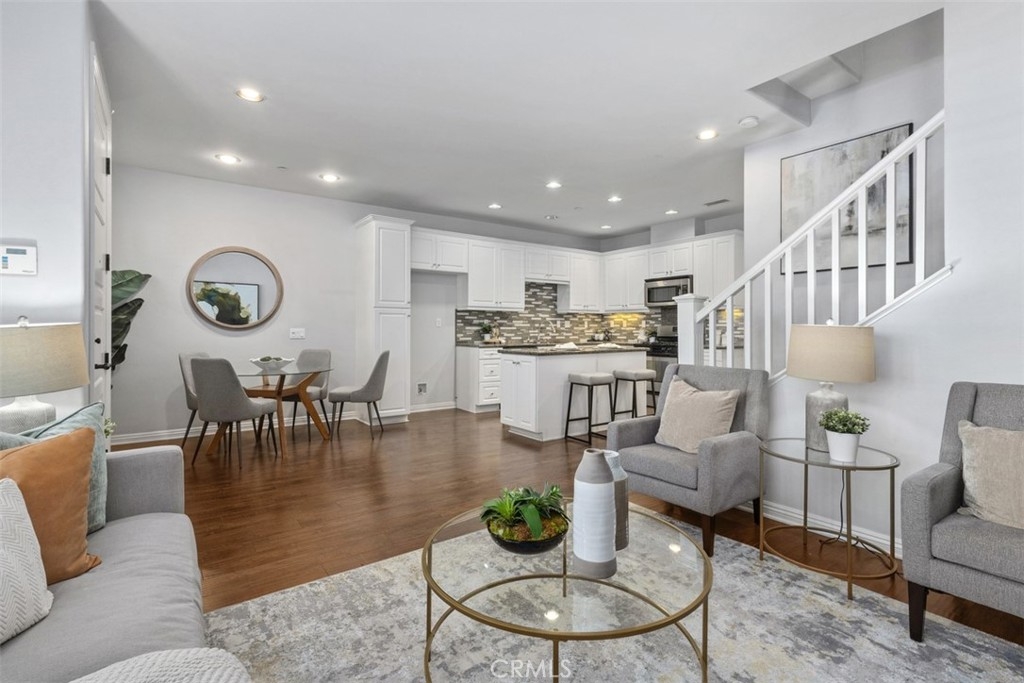 Significant Price Reduction! Beautiful townhome in a desirable Colony Park community. This spacious residence offers 3 bedrooms, 2½ baths and 1,444 sq. ft. of beautifully upgraded living space. A private ground-floor entry leads to direct access into your attached two-car garage. The light-filled second level features recessed lighting, wood-style plank flooring and plantation shutters throughout. The gourmet kitchen boasts stainless steel appliances, granite countertops, custom cabinetry and a breakfast bar overlooking the open dining and living areas. The generous primary suite on the upstairs includes a dual-sink granite vanity, a large bathtub, a separate shower, and a walk-in closet. Two additional bedrooms, a laundry room, and a hallway full bath complete the upper level. Colony Park’s resort-style amenities include three salt-water pools and spas, two clubhouses, a fitness center, BBQ areas, fire pits, playgrounds, and a dog park. Ideally situated east of Harbor Blvd just north of the platinum triangle. It is located minutes from Disneyland, Packing District, shopping, dining, and entertainment in the heart of Anaheim.