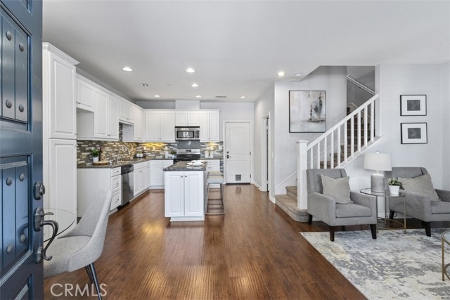 Beautiful townhome in a desirable Colony Park community. This spacious residence offers 3 bedrooms, 2½ baths and 1,444 sq. ft. of beautifully upgraded living space. A private ground-floor entry leads to direct access into your attached two-car garage. The light-filled second level features recessed lighting, wood-style plank flooring and plantation shutters throughout. The gourmet kitchen boasts stainless steel appliances, granite countertops, custom cabinetry and a breakfast bar overlooking the open dining and living areas. The generous primary suite on the upstairs includes a dual-sink granite vanity, a large bathtub, a separate shower, and a walk-in closet. Two additional bedrooms, a laundry room, and a hallway full bath complete the upper level. Colony Park’s resort-style amenities include three salt-water pools and spas, two clubhouses, a fitness center, BBQ areas, fire pits, playgrounds, and a dog park. Ideally situated east of Harbor Blvd just north of the platinum triangle. It is located minutes from Disneyland, Packing District, shopping, dining, and entertainment in the heart of Anaheim.