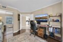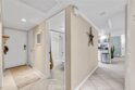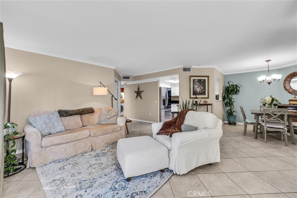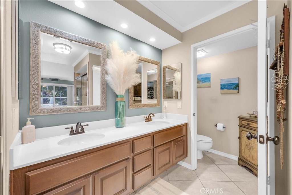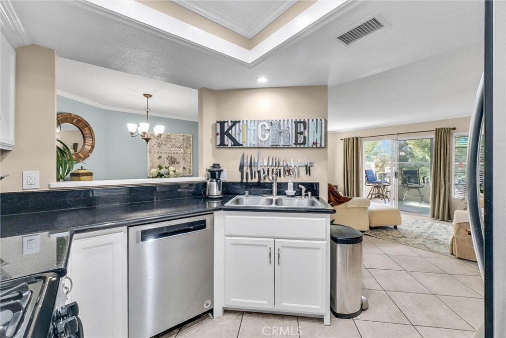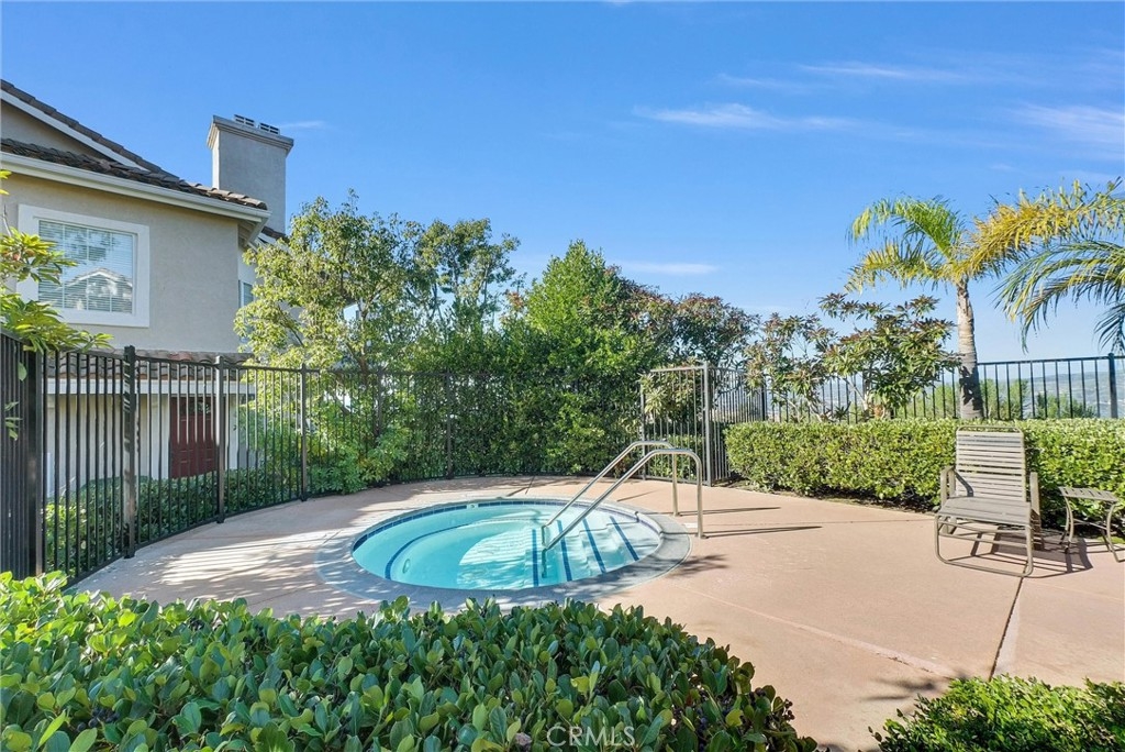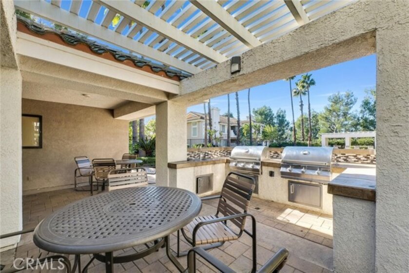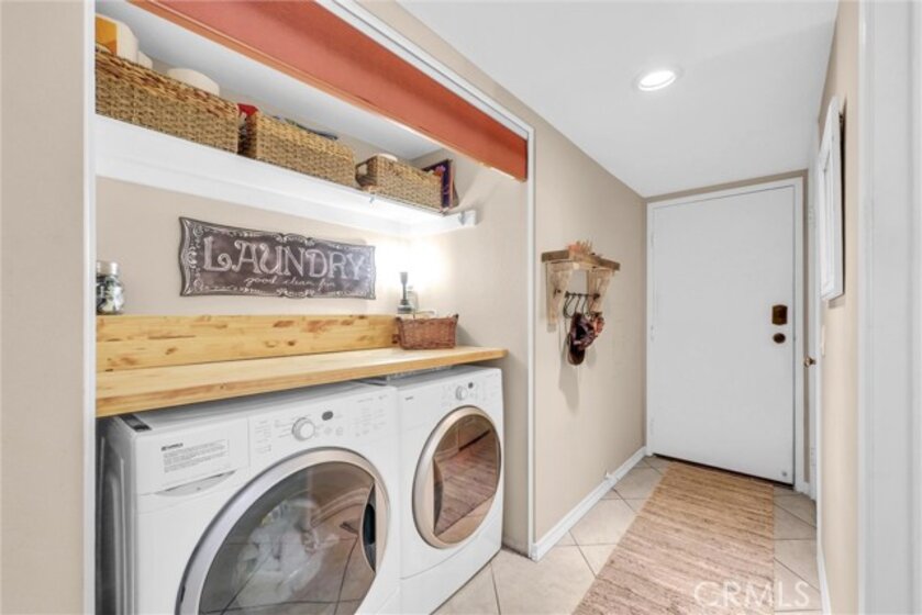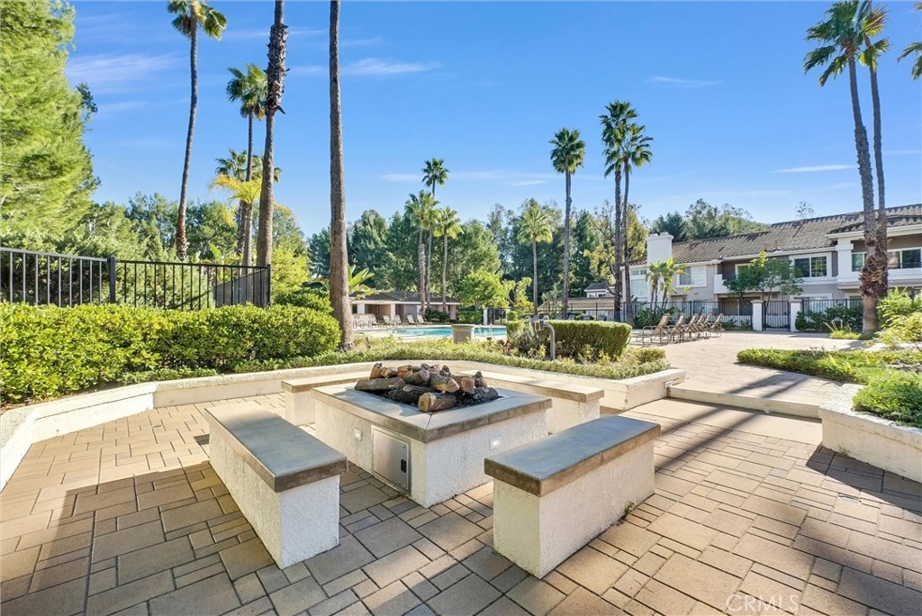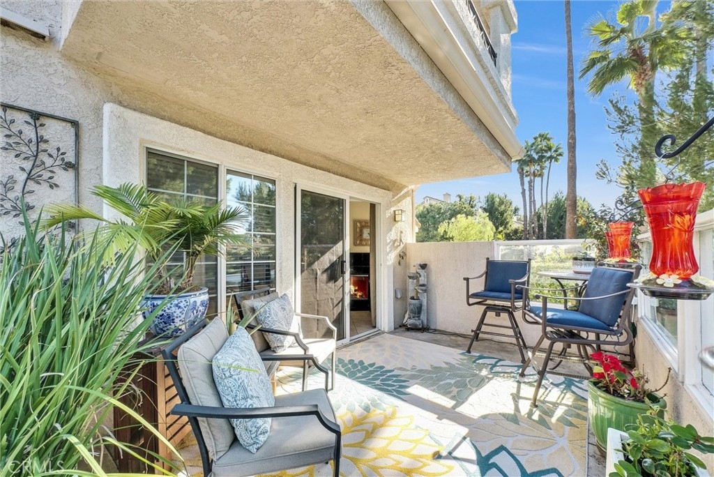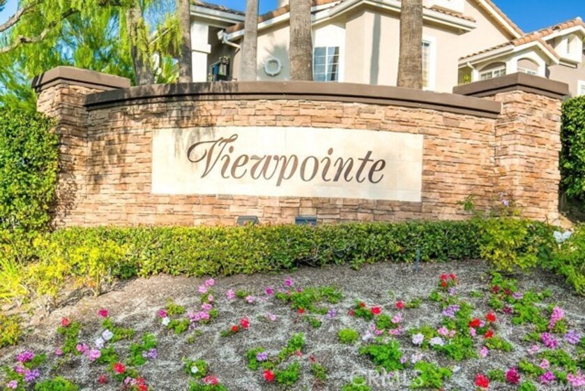 A truly rare opportunity awaits in the prestigious, gated Viewpointe community of Anaheim Hills. This highly desirable ground-floor, single-story 2-bedroom, 2-bath residence offers the convenience of no interior stairs, an attached garage, and effortless indoor-outdoor living. Step inside to a bright, open-concept floor plan featuring a spacious living area with a cozy fireplace, a renovated kitchen, and an adjacent dining space ideal for entertaining. The airy kitchen showcases recessed lighting, granite countertops, nickel hardware accents, ample prep space, and a newer dishwasher. The expansive primary suite is a private retreat, complete with mirrored wardrobe closets, direct patio access via a double slider, and a beautifully remodeled ensuite bathroom featuring dual vanities, custom lighting, and an upgraded shower. The secondary bedroom also offers mirrored wardrobe closets and versatility as a guest room, home office, or gym. Guest restroom includes bathtub with subway tile and updated vanity. Crown molding and low-maintenance ceramic tile flow throughout the main living areas, while both bedrooms feature upgraded laminate flooring. The oversized private patio, accessible from both the living room and primary bedroom, is perfect for morning coffee or evening relaxation. Additional highlights include in-home laundry hookups with washer and dryer included, a newer water heater, direct access to a private one-car garage with overhead storage, plus an assigned covered carport conveniently located just across the drive. Viewpointe residents enjoy resort-style amenities including a large pool, multiple hot tubs, BBQ area, fire pits, gated entry, and ample guest parking. Ideally located near hiking, mountain biking, and equestrian trails, this home offers the perfect blend of comfort, convenience, and outdoor lifestyle. Come experience the best of Anaheim Hills living in this exceptional ground-level condo – truly a perfect find!