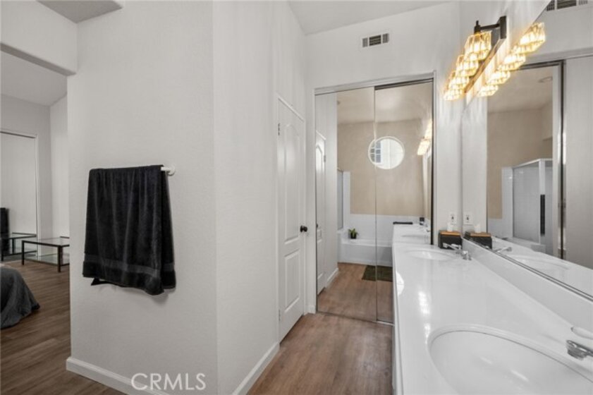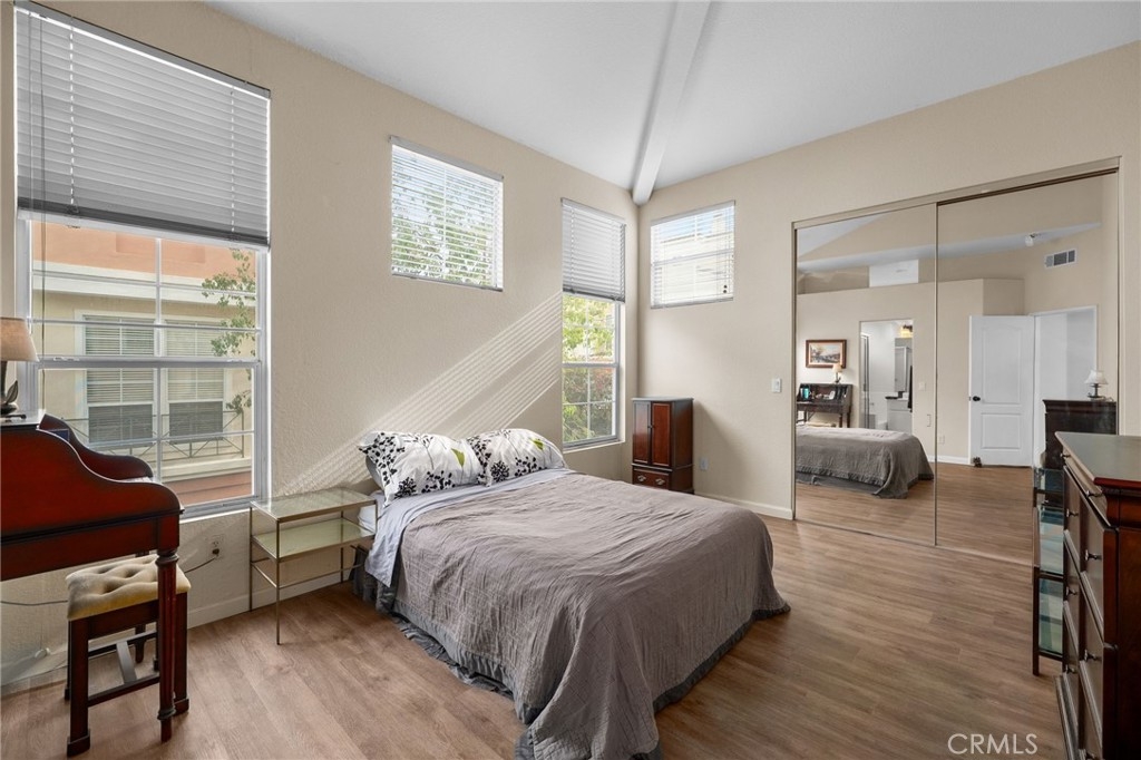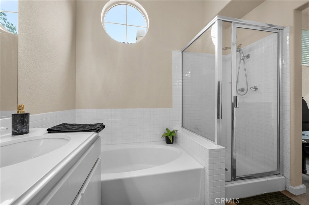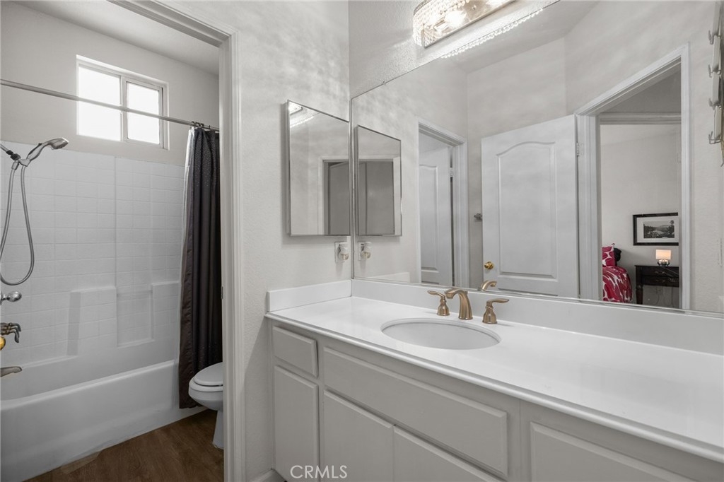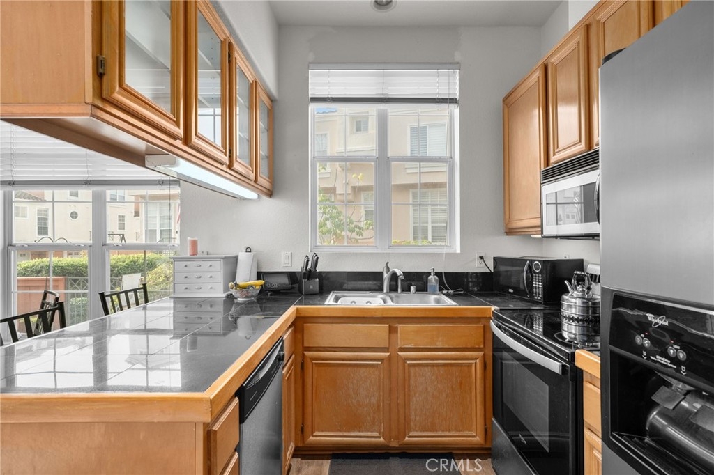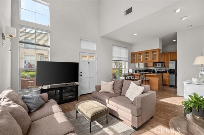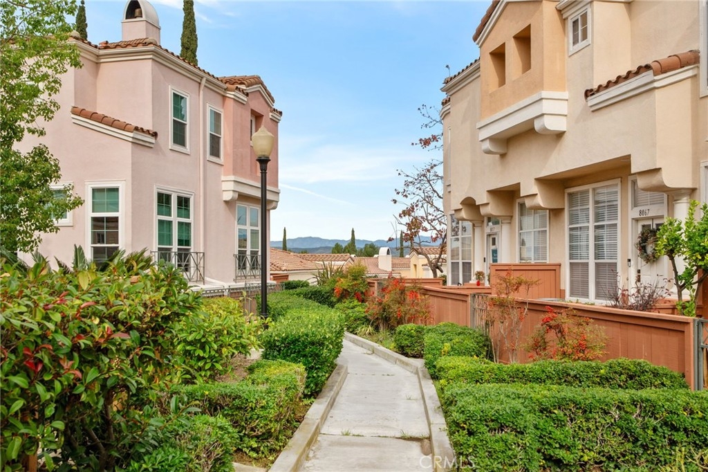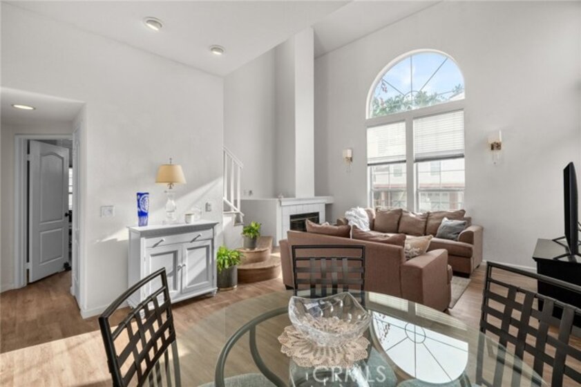 Welcome to this beautifully situated end-unit condo in the highly desirable, gated Summit Renaissance community of Anaheim Hills. Tucked behind a private fenced courtyard, this light-filled home offers comfort, privacy, and an exceptional multi-level layout that lives like a main-level home. From the front door, you enter directly into the family room, creating a seamless, single-family–style feel. The main level features laminate flooring, large windows, and an abundance of natural light throughout. The inviting living room includes a cozy fireplace, perfect for relaxing or entertaining. The open kitchen flows effortlessly into the breakfast nook, ideal for everyday living, while a convenient powder bathroom is also located on this level. The main-floor primary bedroom serves as a true retreat with a spacious layout, large windows, and an en-suite bathroom with dual sinks. Just a short flight of stairs up, you’ll find two additional bedrooms and a full bathroom, offering flexibility for guests, family, or a home office. Downstairs, the attached two-car garage includes laundry and provides direct access to the home—simply walk up one flight of stairs to the main living area. Residents of Summit Renaissance enjoy resort-style amenities including a gated community pool and spa, clubhouse, and gym. Ideally located near shopping, dining, and freeway access, this Anaheim Hills gem blends comfort, functionality, and convenience—don’t miss the opportunity to make it yours.
