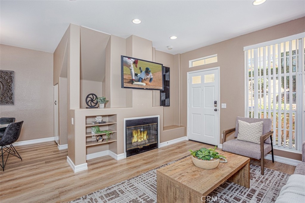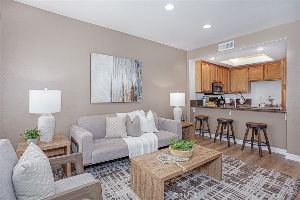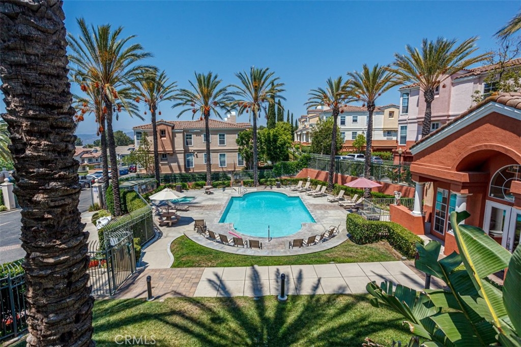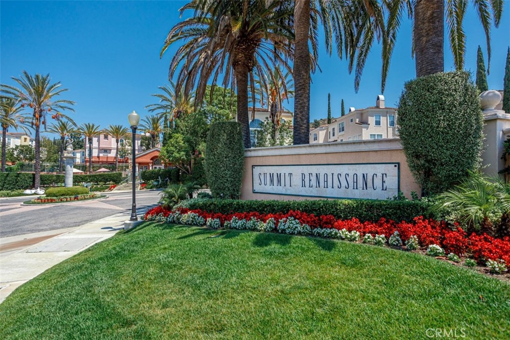 Welcome to Summit Renaissance, a beautiful, quiet, gated community located in Anaheim Hills off of Serrano. Enter through a private courtyard , with plenty of room for entertaining, that leads to a single level living area. This 2 bedroom, 2 bath condo offers a cozy fireplace, breakfast bar, recessed lighting, vaulted ceilings, stainless steel appliances, granite countertops, and rich laminate flooring. The master bedroom includes a mirrored closet, ensuite bathroom along with dual sinks. A convenient two-car tandem garage provides direct access to the condo and to the inside laundry area with oversized cabinets for storage. This area offers award winning schools. Amenities include a gated pool, spa, and fitness center. Surrounded by breathtaking views, you will also have access to convenient shopping, restaurants, and serene hiking trails.