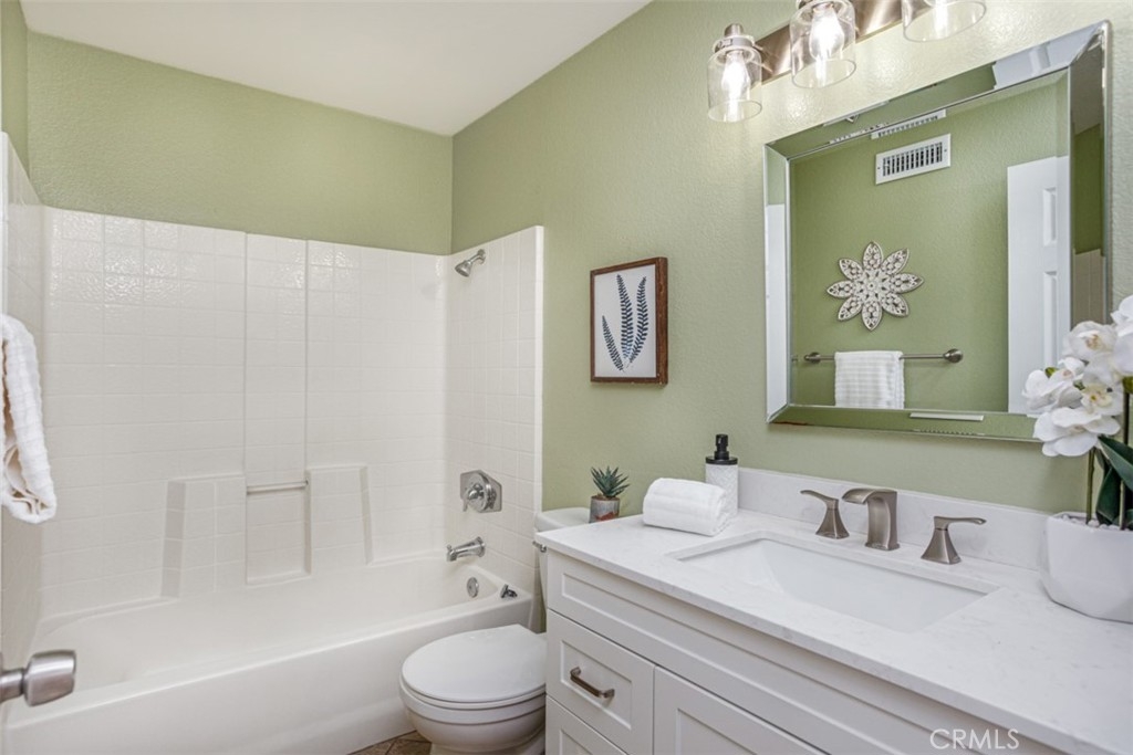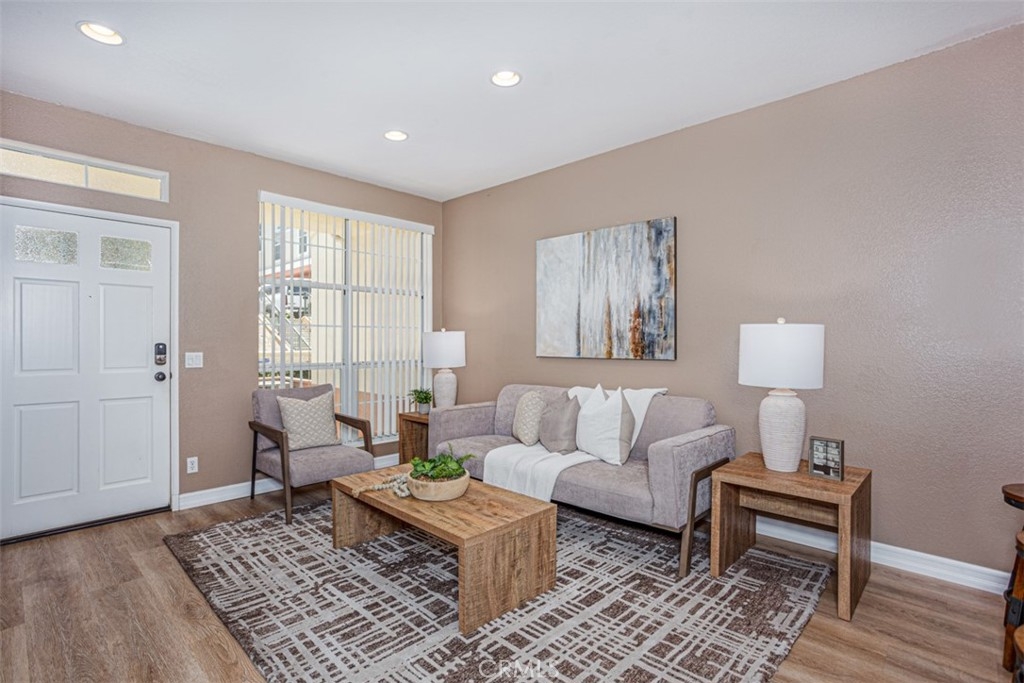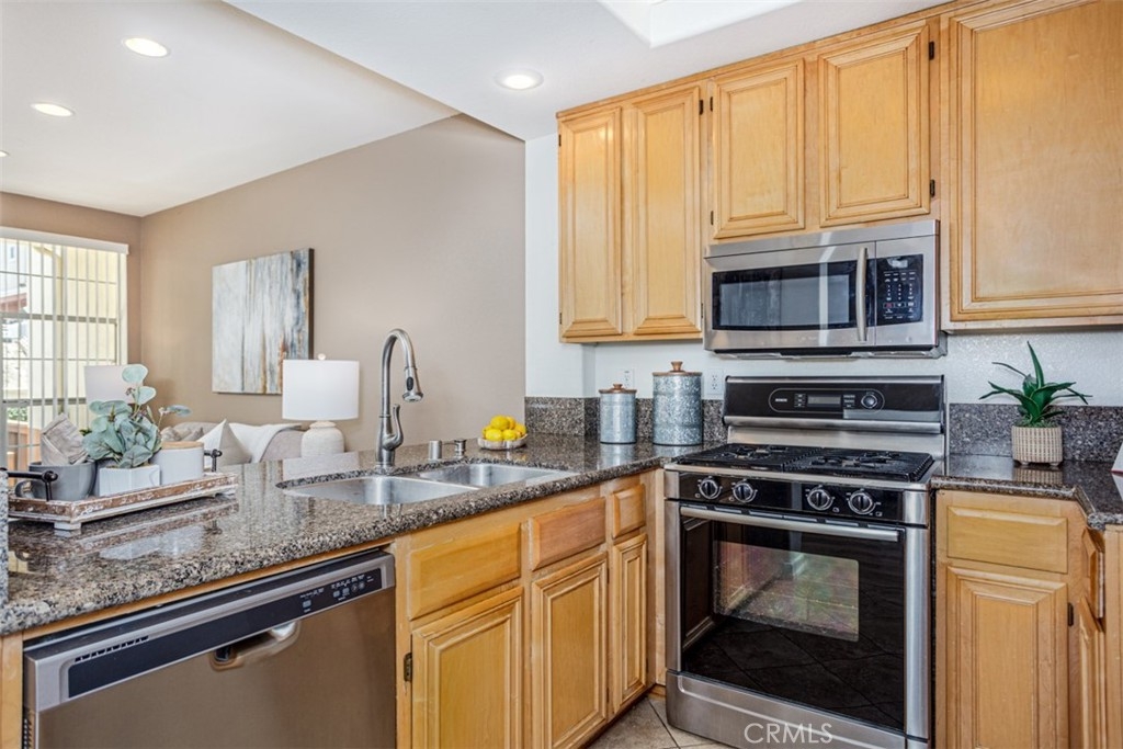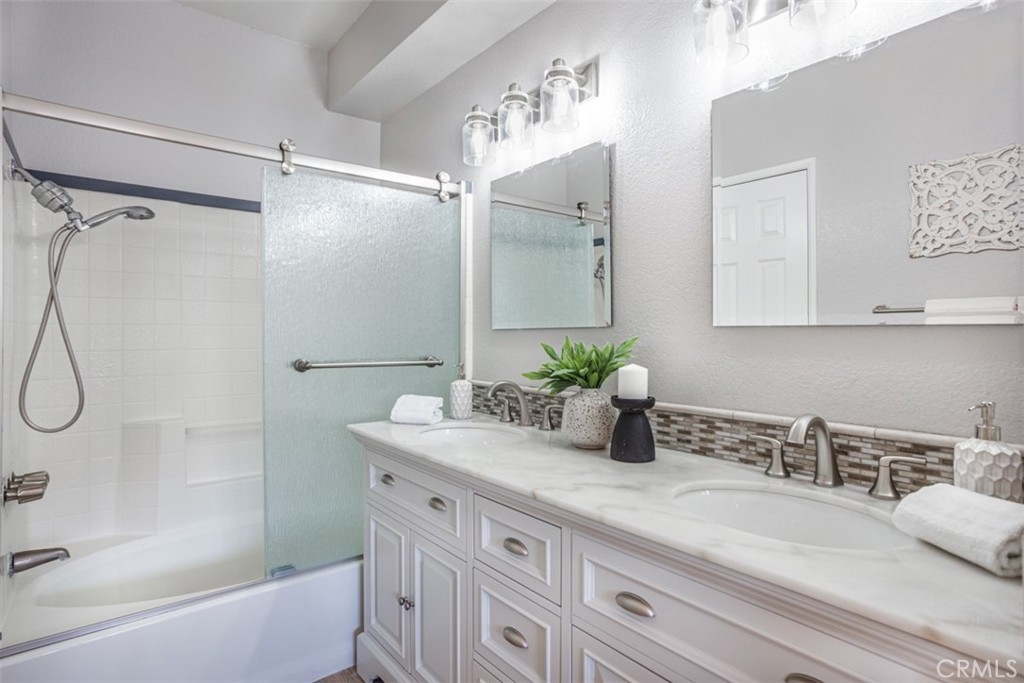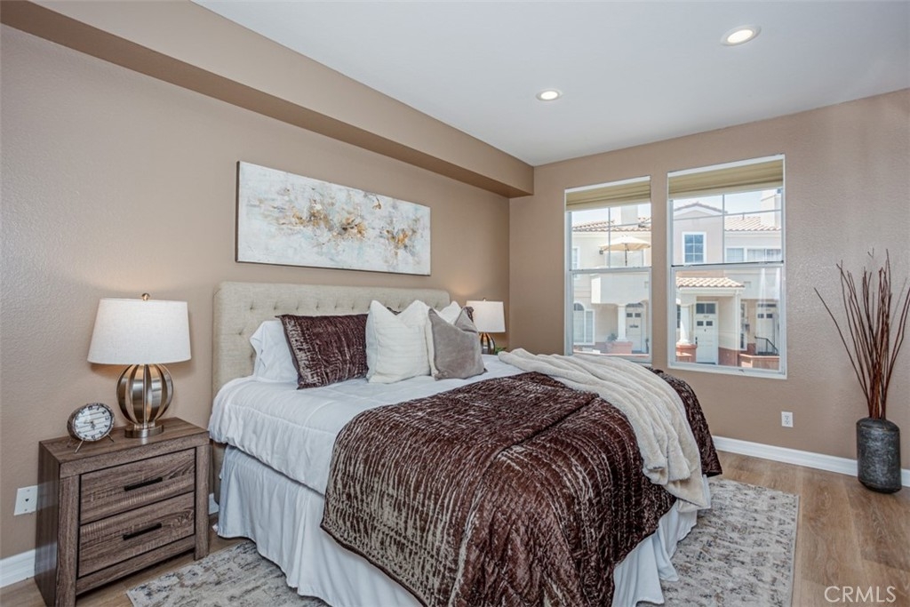 Welcome to Summit Renaissance, a beautiful, quiet, gated community located in Anaheim Hills off of Serrano. Enter through a private courtyard , with plenty of room for entertaining, that leads to a single level living area. This 2 bedroom, 2 bath condo offers a cozy fireplace, breakfast bar, recessed lighting, vaulted ceilings, stainless steel appliances, granite countertops, and rich laminate flooring. The master bedroom includes a mirrored closet, ensuite bathroom along with dual sinks. A convenient two-car tandem garage provides direct access to the condo and to the inside laundry area with oversized cabinets for storage. This area offers award winning schools. Amenities include a gated pool, spa, and fitness center. Surrounded by breathtaking views, you will also have access to convenient shopping, restaurants, and serene hiking trails.