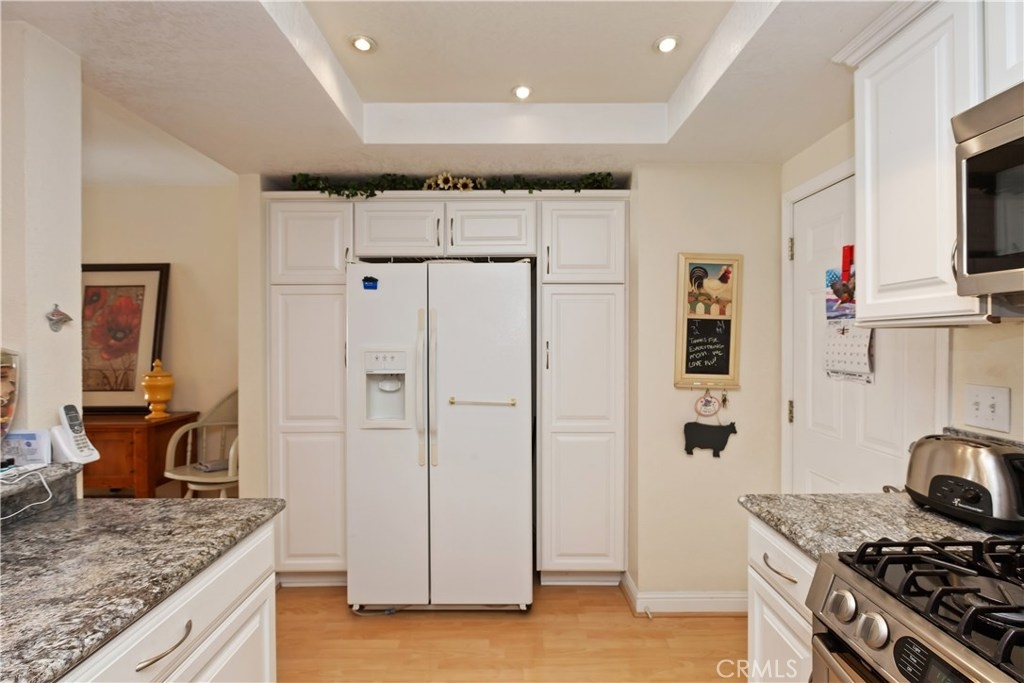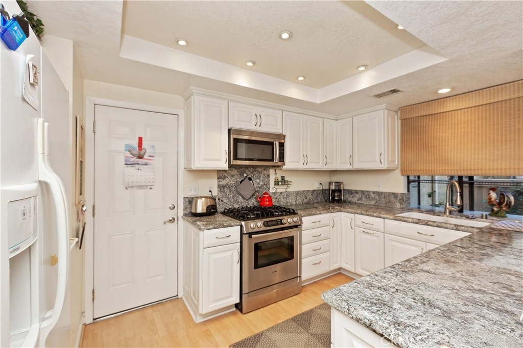 Welcome home to this move in ready two story Condo! Located in the quiet and beautiful Laurelwood Village community of Anaheim. Close to freeways, shopping, schools, Honda Center, and Anaheim Stadium. The kitchen has been remodeled with white cabinets, granite countertops, and stainless steel appliances. The open floor plan on the first floor gives plenty of natural light and includes powder room, dinning room, living room, and leads out to the private patio. The openness of this home makes it a perfect place to entertain friends and family. Upstairs you have a spacious master bedroom with mirrored closet doors and a private bathroom. There's also plenty of space in the two other bedrooms upstairs. Additionally, the home includes two car garage and a large community pool. A must see home!
